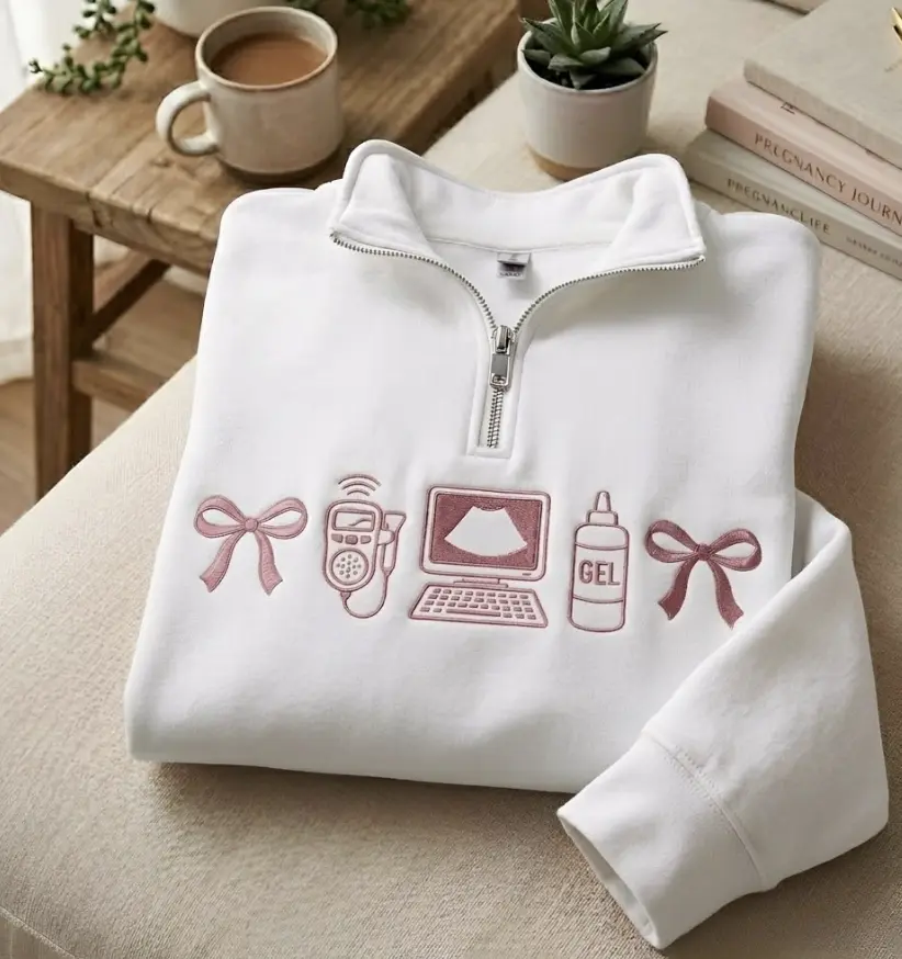 Embroidered Sonographer Quarter Zip Sweatshirt, Ultrasound Tech Sweatshirt, Coquette Bow Sweatshirt, Hospital Sweatshirt, Graduation Gift