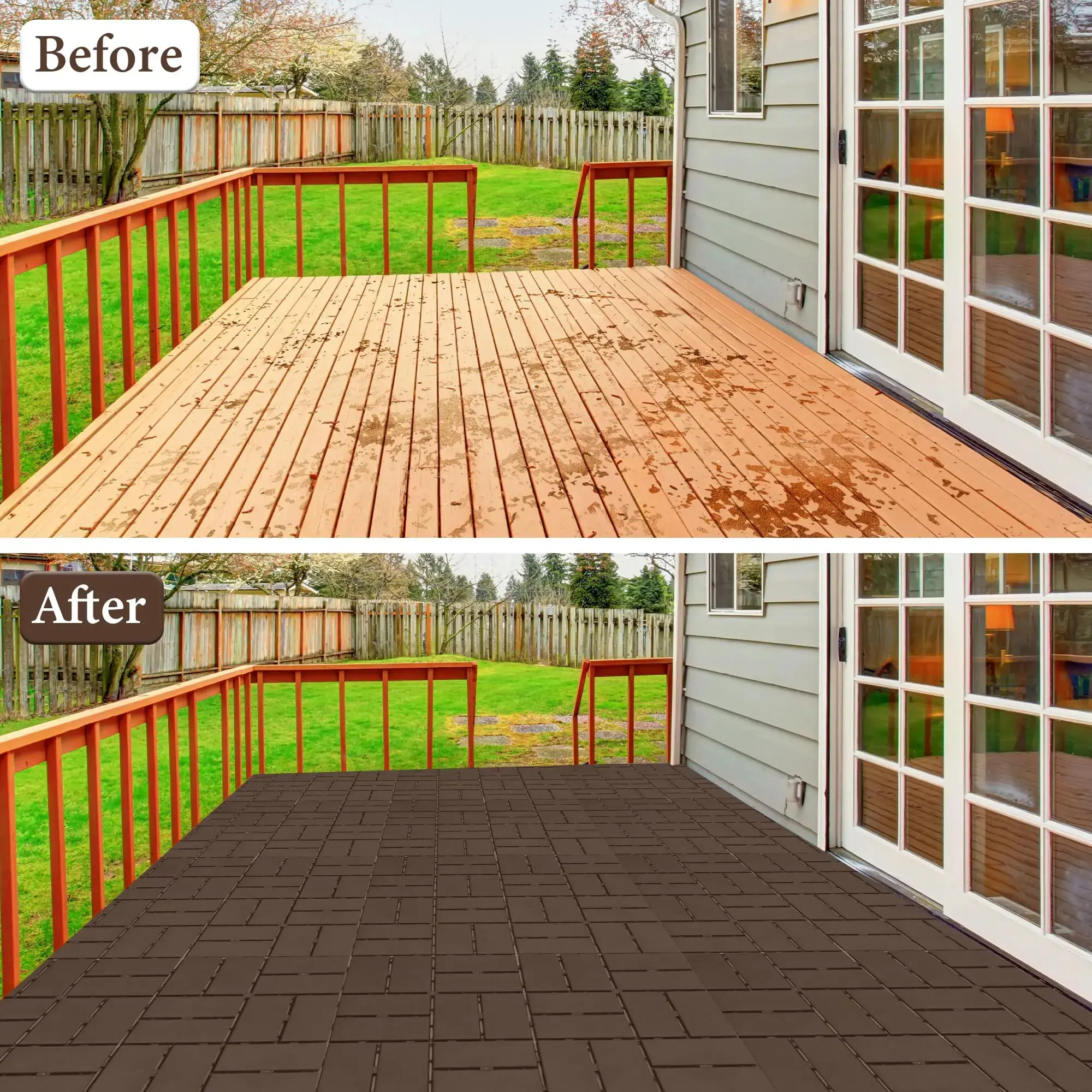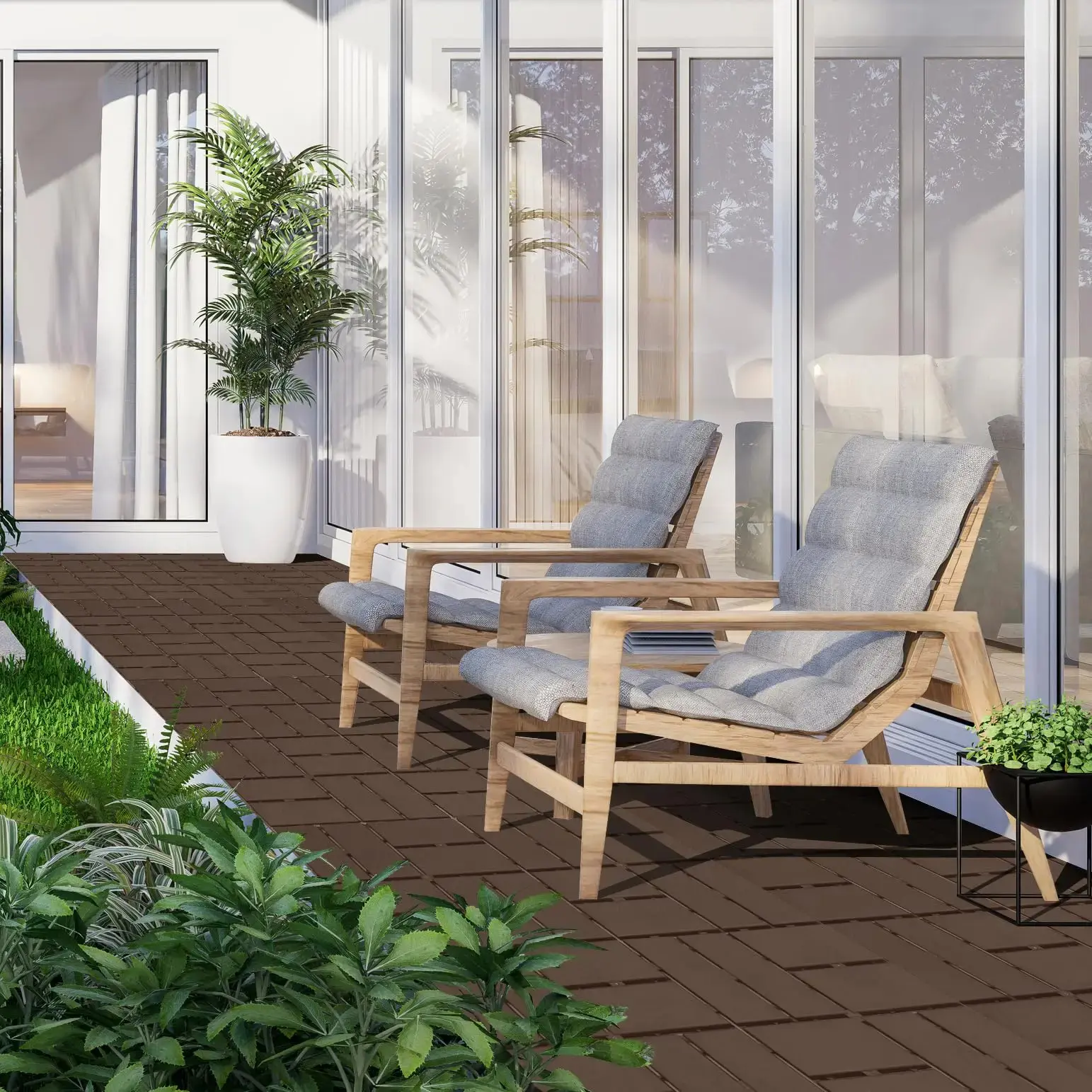 12x12in Plastic Interlocking Deck Tiles Waterproof PVC Outdoor Flooring Pavers for Patio All Weather Outdoor Furniture