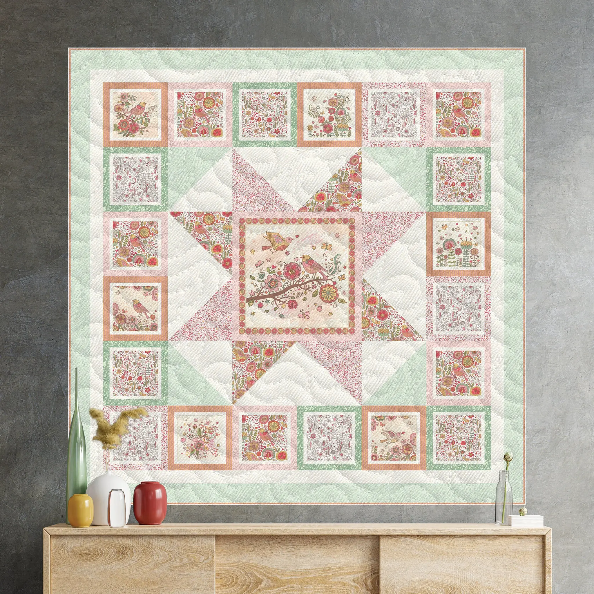 Celebrate the beauty of nature with a whimsical twist with the Bird Song Fabric Collection by Pat Sloan for Benartex Studio. This charming collection features stylized birds in a folk art style, blooming florals, playful dots, and textural blenders—all wrapped in a warm, modern palette. Each design balances elegance with fun, offering endless creative options for quilts, bags, and home décor. Made from soft, high-quality 100% cotton and measuring approximately 45" wide, Bird Song is perfect for patchwork and piecing. With a show-stopping panel and coordinating prints in varying scales, this line invites you to mix, match, and tell your own joyful story through fabric. Plus, enjoy a free downloadable quilt pattern, Nature Walk in the Starlight by Wendy Sheppard, for a beautiful 70" x 70" quilt using Bird Song fabrics to get you stitching right away!