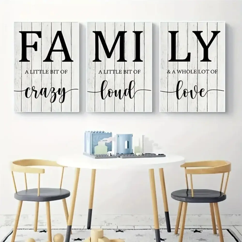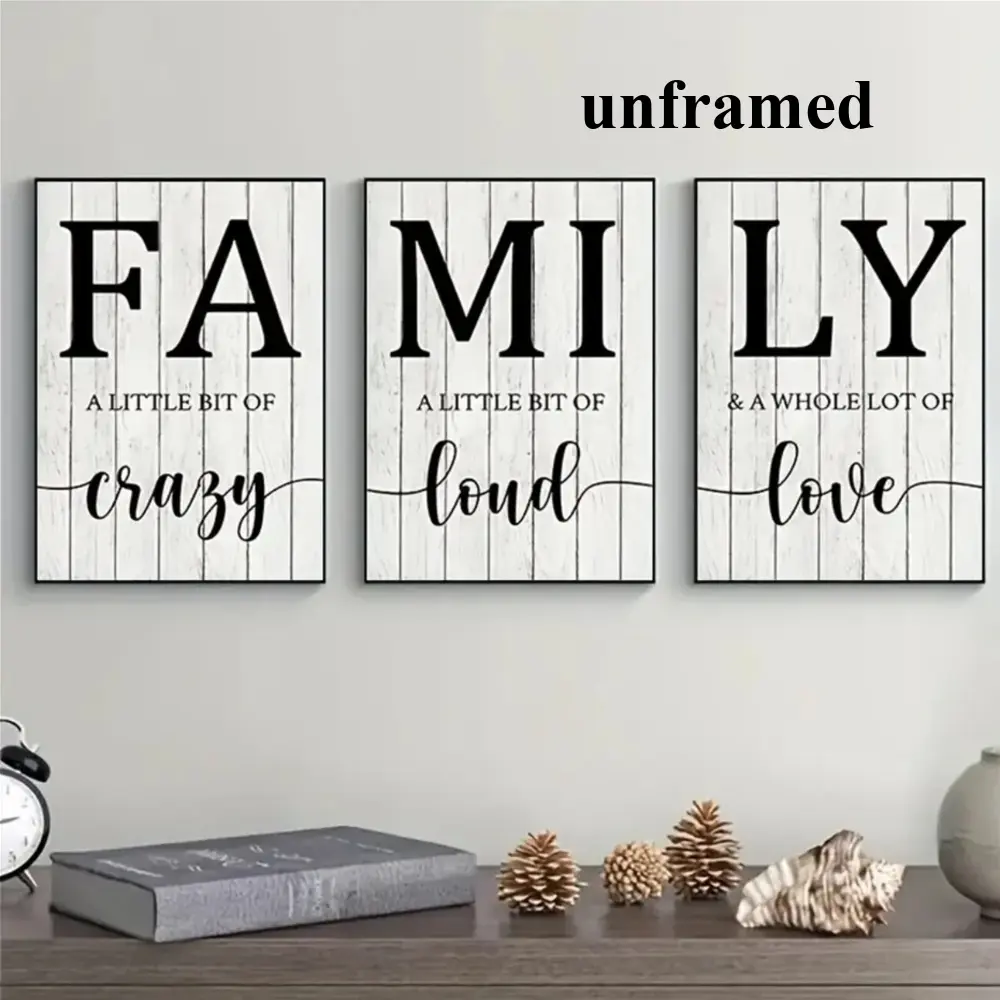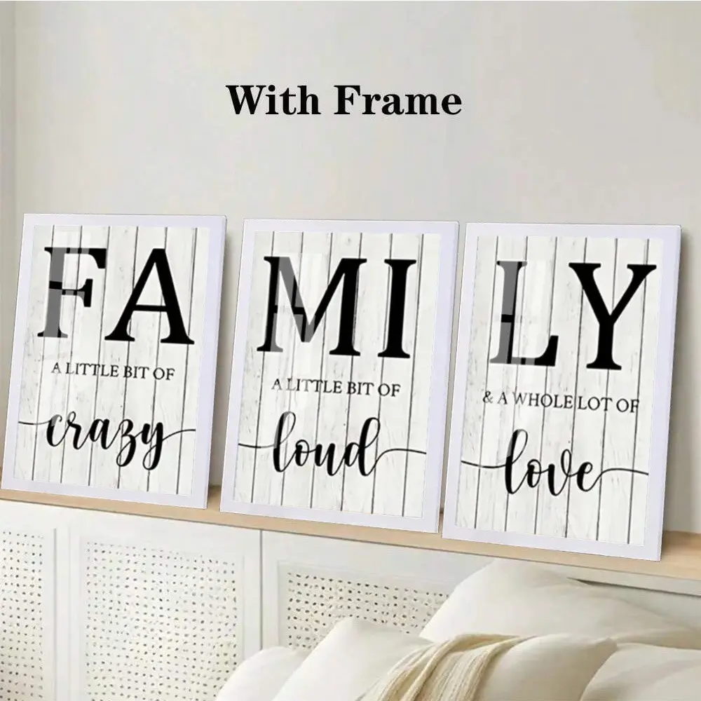 3-Piece Optional Wooden Frame Modern Simple Black White Family English Alphabet Typography Art Canvas Poster High Precision Color Micro-spray Moisture-proof Coating Clear Text No Color Difference Excellent Flatness Living Room Shared Space Decor