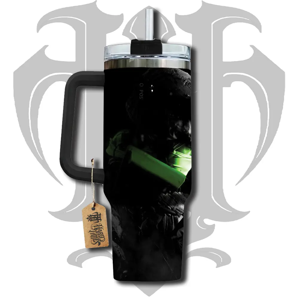 HardTimesMerch - Call of Duty 4: Modern Warfare #1 40oz Handle Tumbler Stainless Steel Travel Mug, Game Inspired Vacuum Insulated Cup, Large Iced Coffee Tumbler, Manga Fighter Drinkware, Gamer Gift for Him Her
