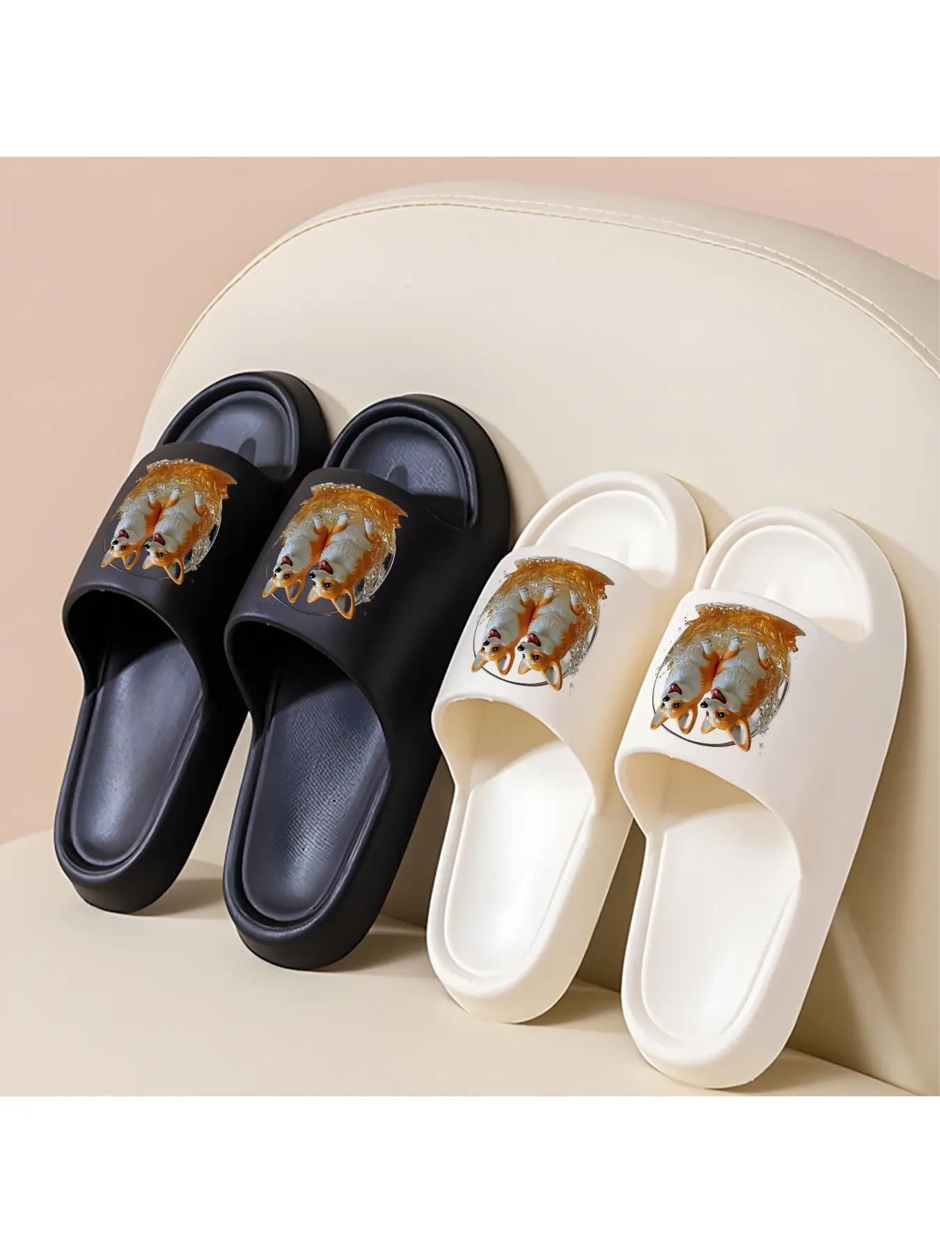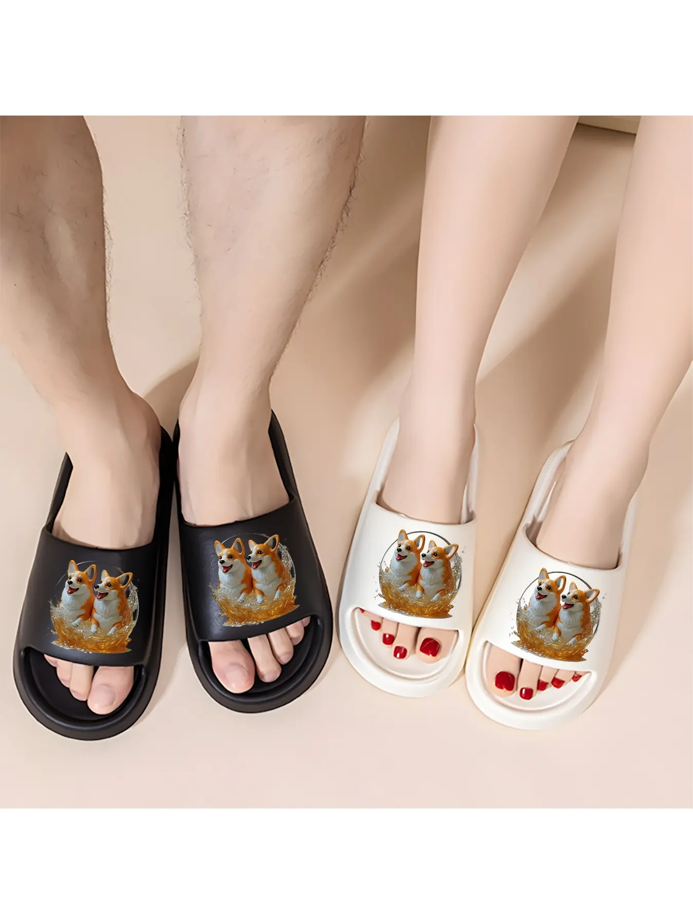 Corgi Playing in Water Print Slippers, Soft Sole Non-slip Home Slippers, Indoor and Outdoor Universal Cloud-like Slippers, Unisex Breathable Summer Slippers, Cute Dog Pattern Slippers Suitable for
