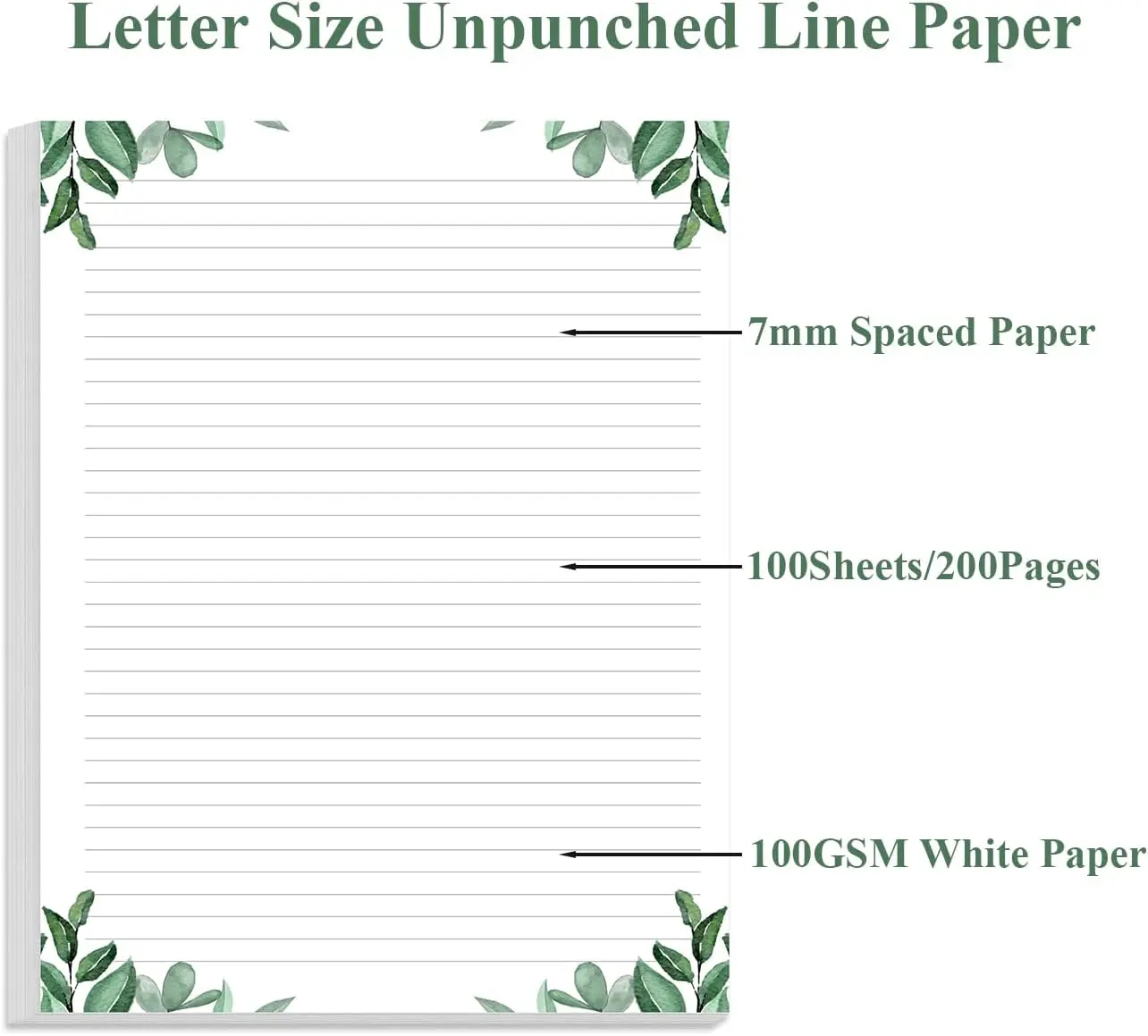 Letter Size Unpunched Ruled Filler Paper, 100Sheets/200Pages Loose-Leaf Line, 100gsm, 8.5'' x 11''