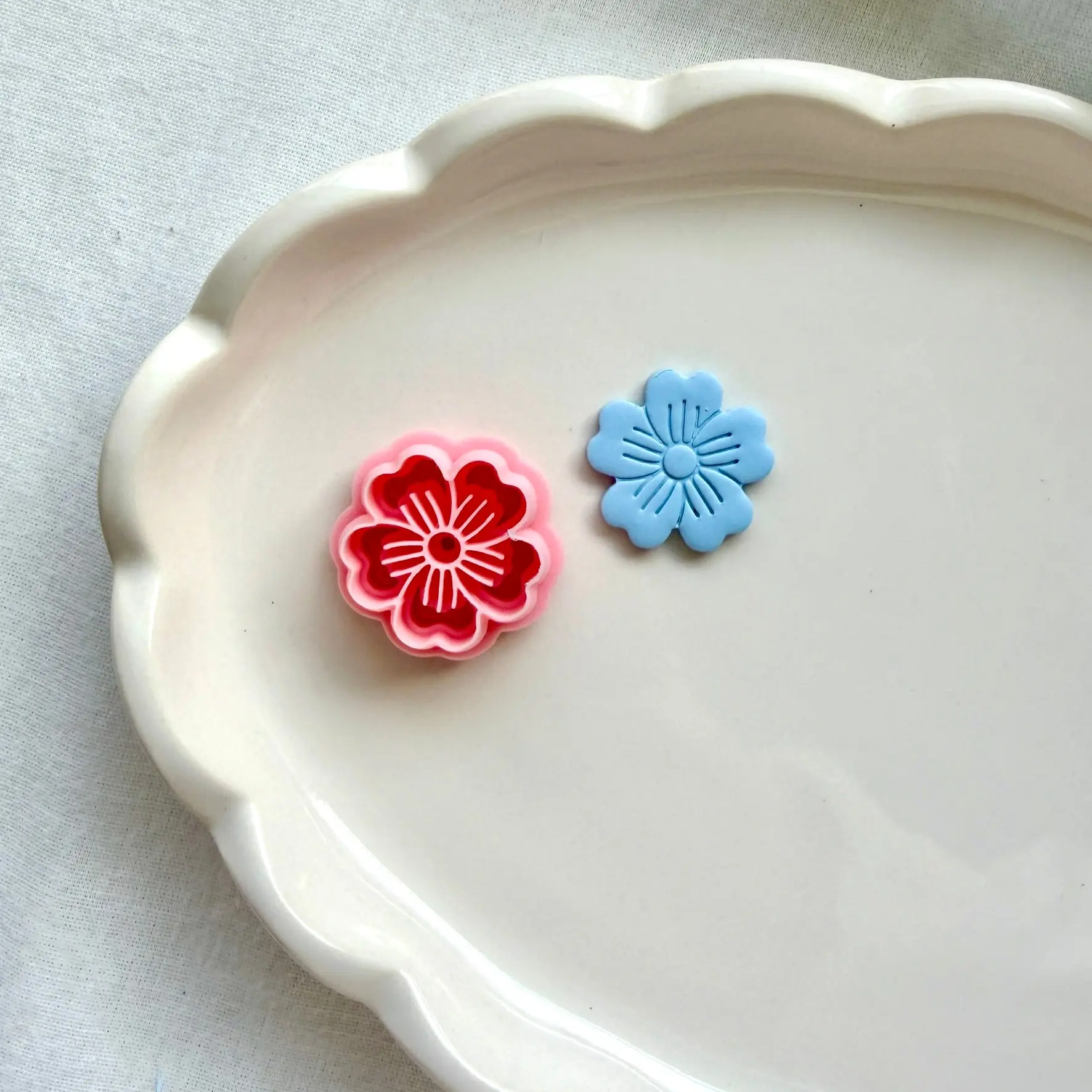 Professional-grade 3D printed cutters. Designed specifically for polymer clay artists, these tools are engineered to provide the cleanest possible cuts, significantly reducing your sanding time and ensuring a professional finish for every piece. Key Features • Ultra-Sharp Cutting Edge: Featuring a 0.2mm tapered blade, these cutters slice through clay with precision and minimal drag. • Reinforced Base: Each cutter is designed with a sturdy, thickened base to provide a comfortable grip and prevent bending during use. • Durable Material: Printed with high-quality, eco-friendly PLA+ for a rigid, long-lasting tool that maintains its shape. How to Use 1. Preparation: Place your conditioned clay on a smooth, non-porous surface (like glass or tile). 2. The Cut: Press the cutter firmly and evenly into the clay. 3. Release: Gently wiggle the cutter or lift it straight up. For complex shapes, a light dusting of cornstarch or a dip in water can act as a release agent to ensure the clay pops out perfectly. Care Instructions • Cleaning: Hand wash with lukewarm soapy water and a soft toothbrush to remove any clay residue. • Storage: Store in a cool, dry place away from direct sunlight. • Important: These cutters are not dishwasher safe. High heat can warp the 3D printed plastic. Keep away from ovens and extreme heat sources.