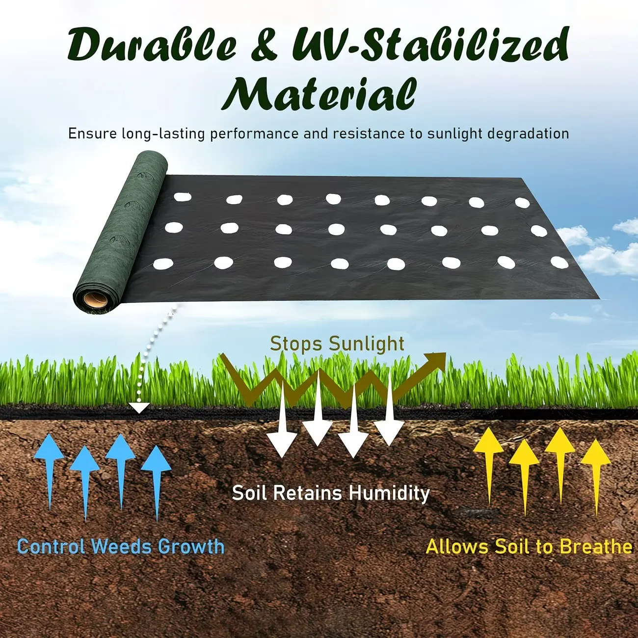 Dual Layer Perforated Non-Woven Weed Barrier Cloth, 8cm Hole Size, Breathable Water-Permeable PP Material, Garden Use