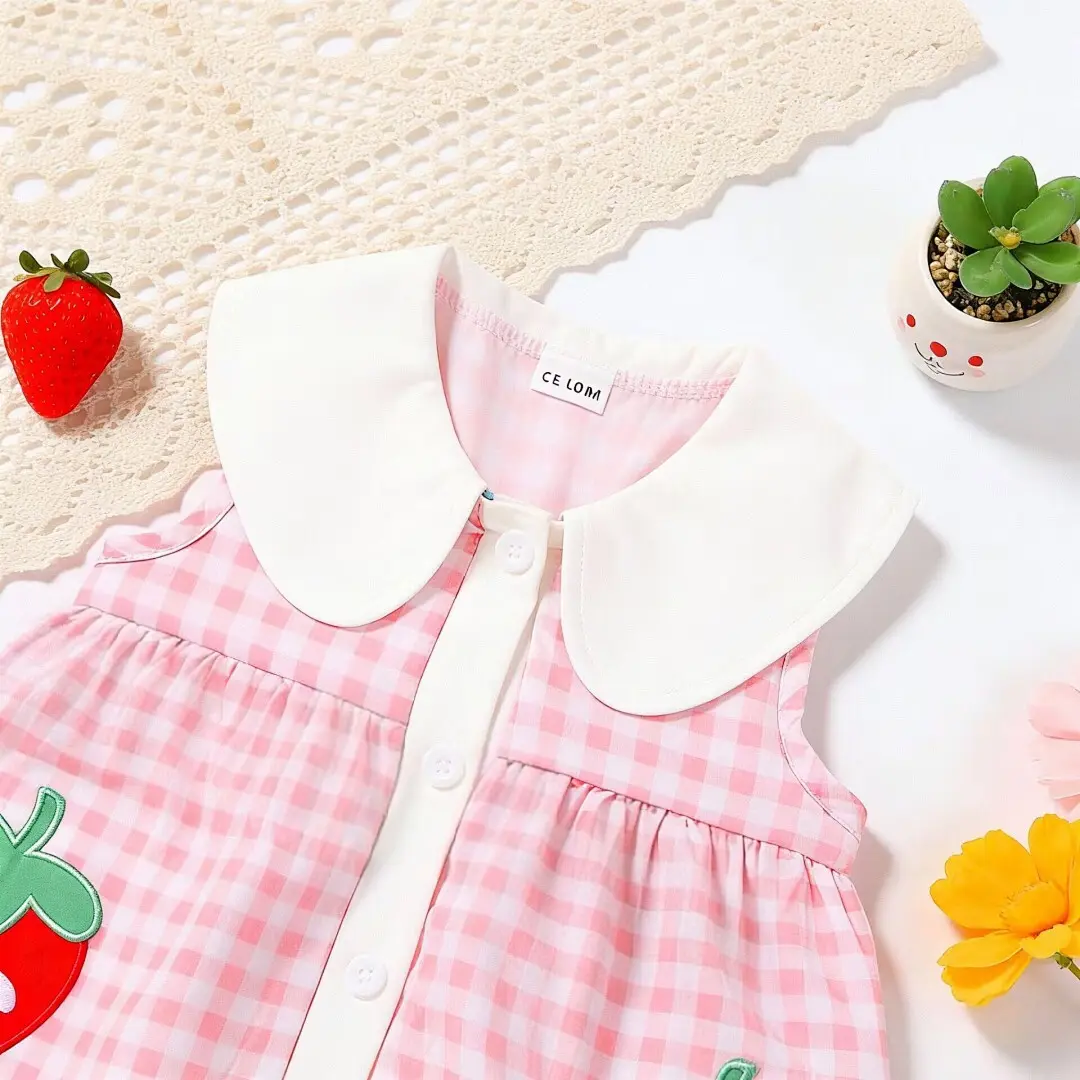 This adorable dress is perfect for your little one's summer adventures. It features a charming strawberry and apple print, making it a fun choice for casual outings. The plaid ruffled design adds a touch of elegance, while the sleeveless style keeps your toddler cool and comfortable. Ideal for warm days, this dress is a must-have for any summer wardrobe.