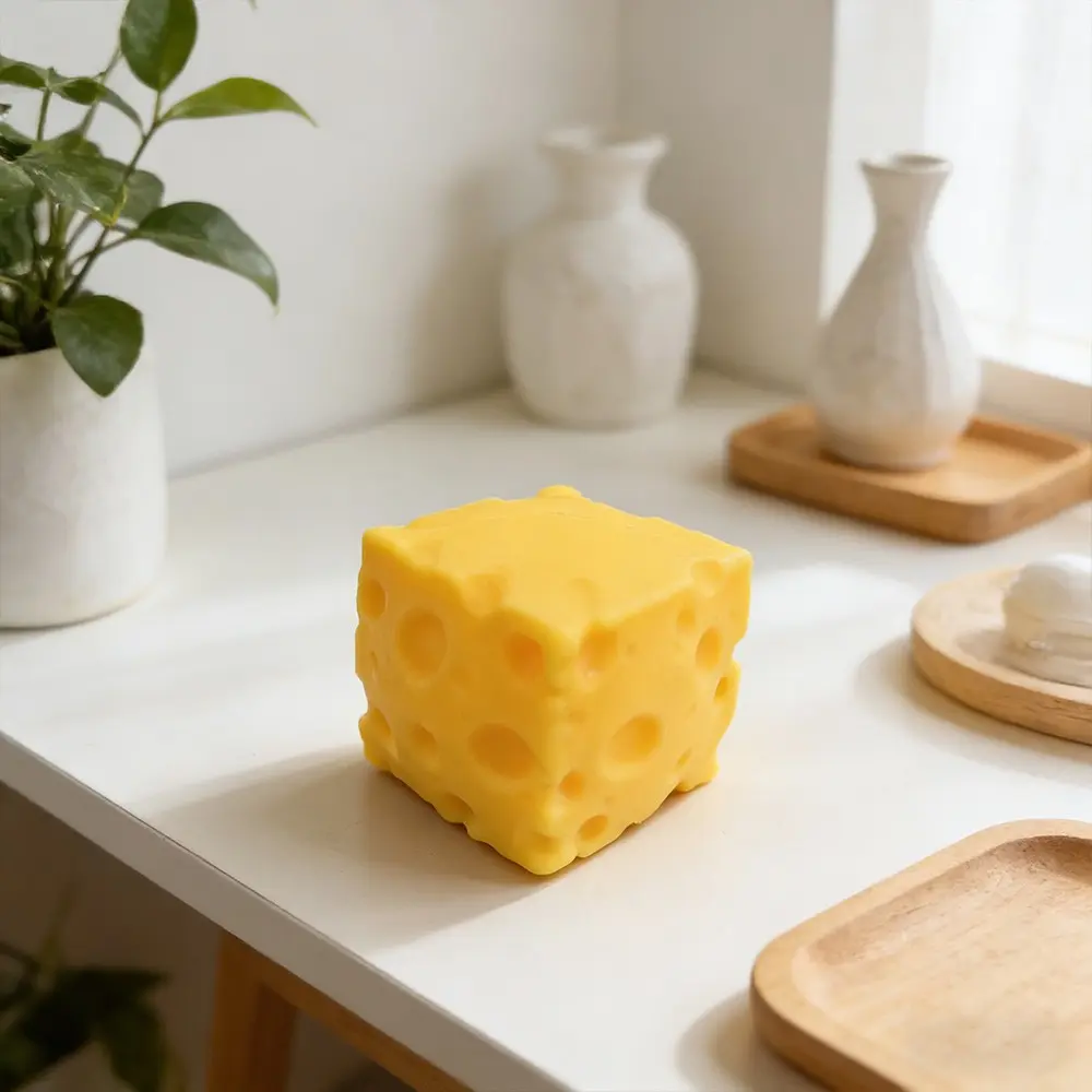 【Food Theme Design】: Features a food theme cheese cube design, adding a fun and unique touch to the toy.