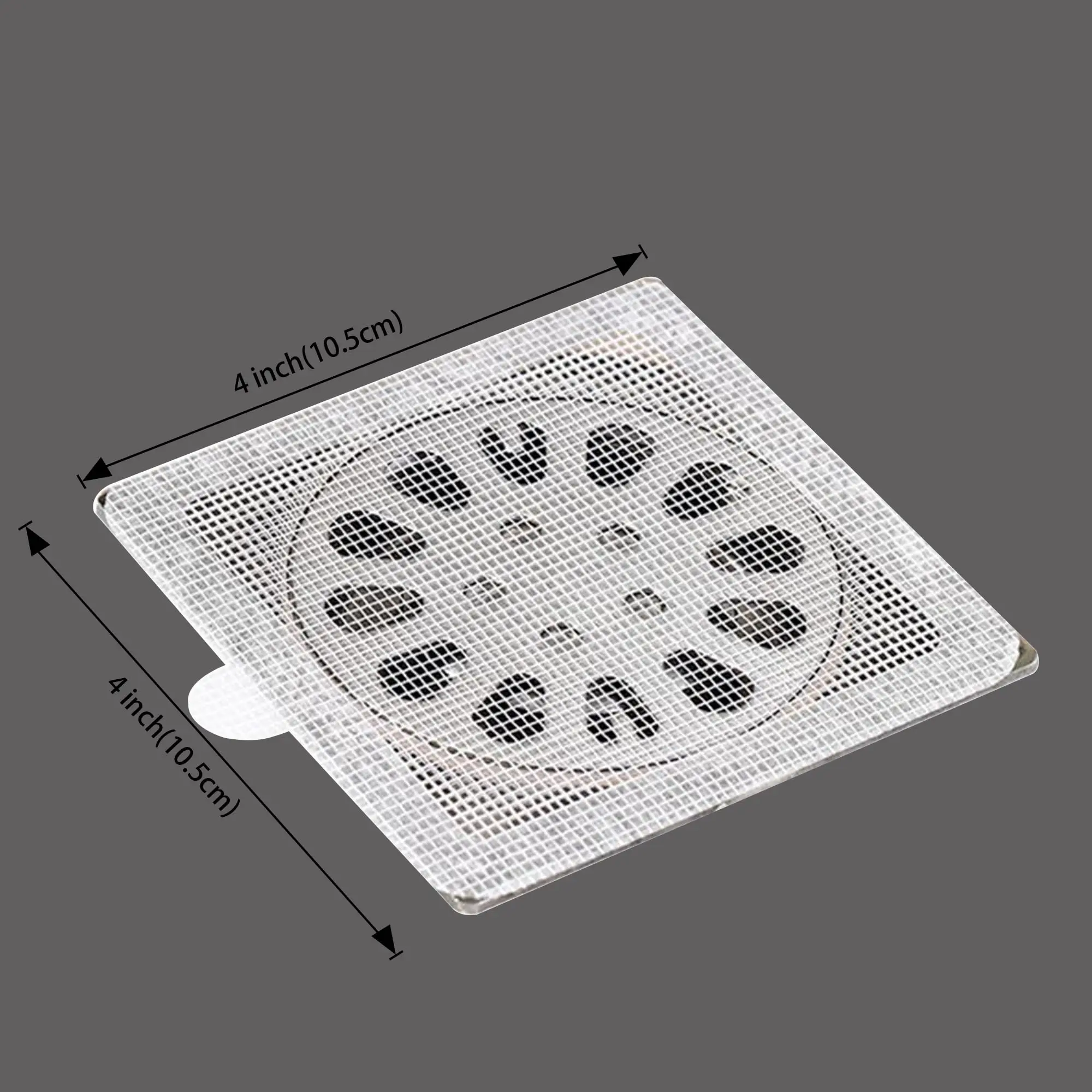 4 Inch Square Shower Drain Hair Catcher Stickers are crafted with durable glass fiber and strong adhesive backing. They firmly cover floor drains, suitable for various surfaces like metal, ceramic, and tile. They won't fall off even after prolonged water exposure, ensuring long-lasting protection.
