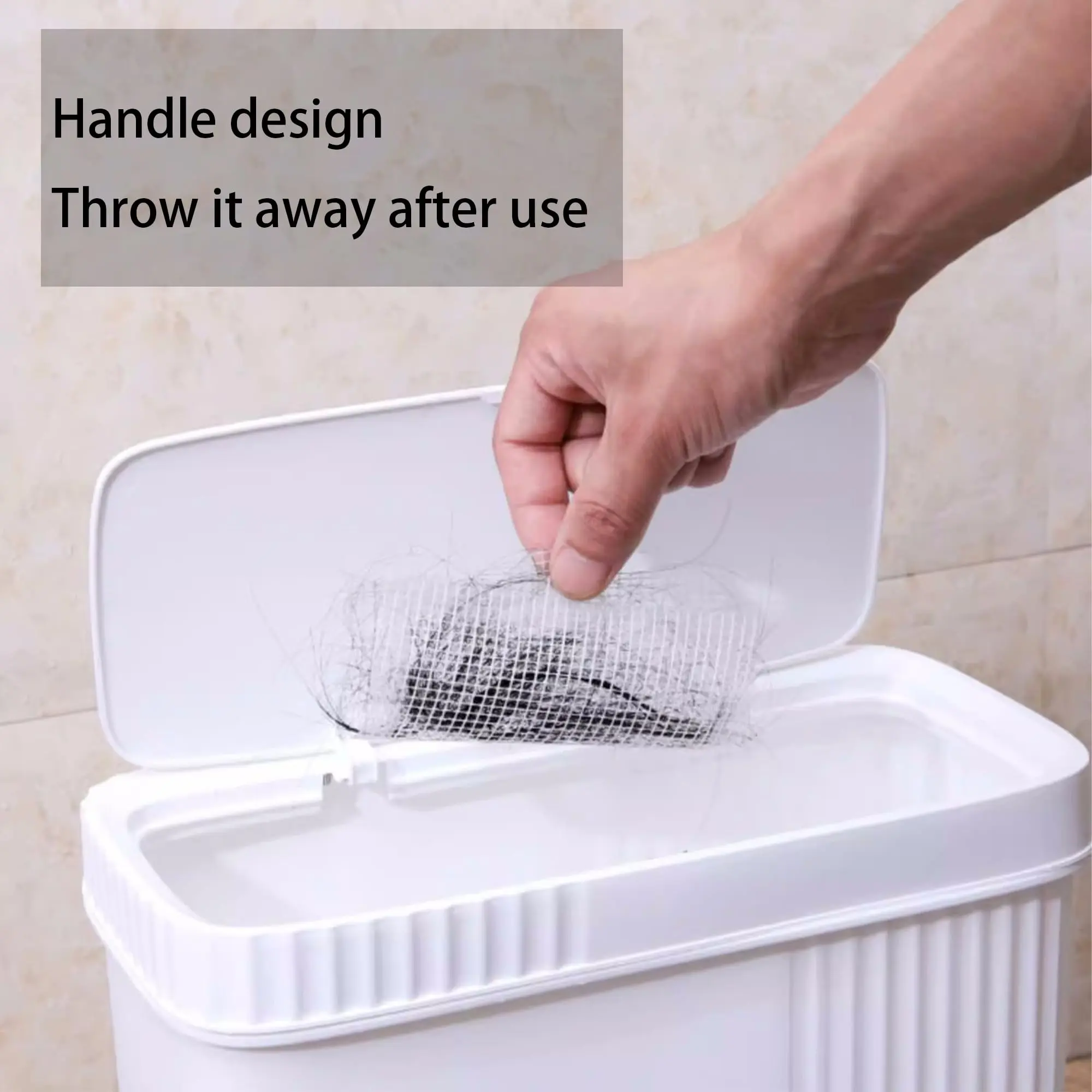Save time and hassle with our easy-to-use HairFilter stickers. Wipe clean around the drain, then simply peel and stick onto any bath tub, shower, or bathroom sink drain for instant protection. The ear design on the left and right sides allows for easy removal and disposal.
