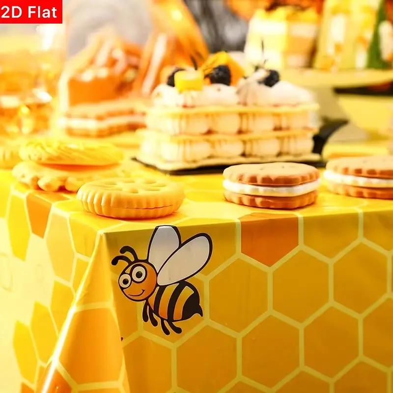 2D Flat Party Tablecloth 1pc, Beehive Animal Design, Polyester Decorative Tablecloth, Birthday Decoration, No Power Required