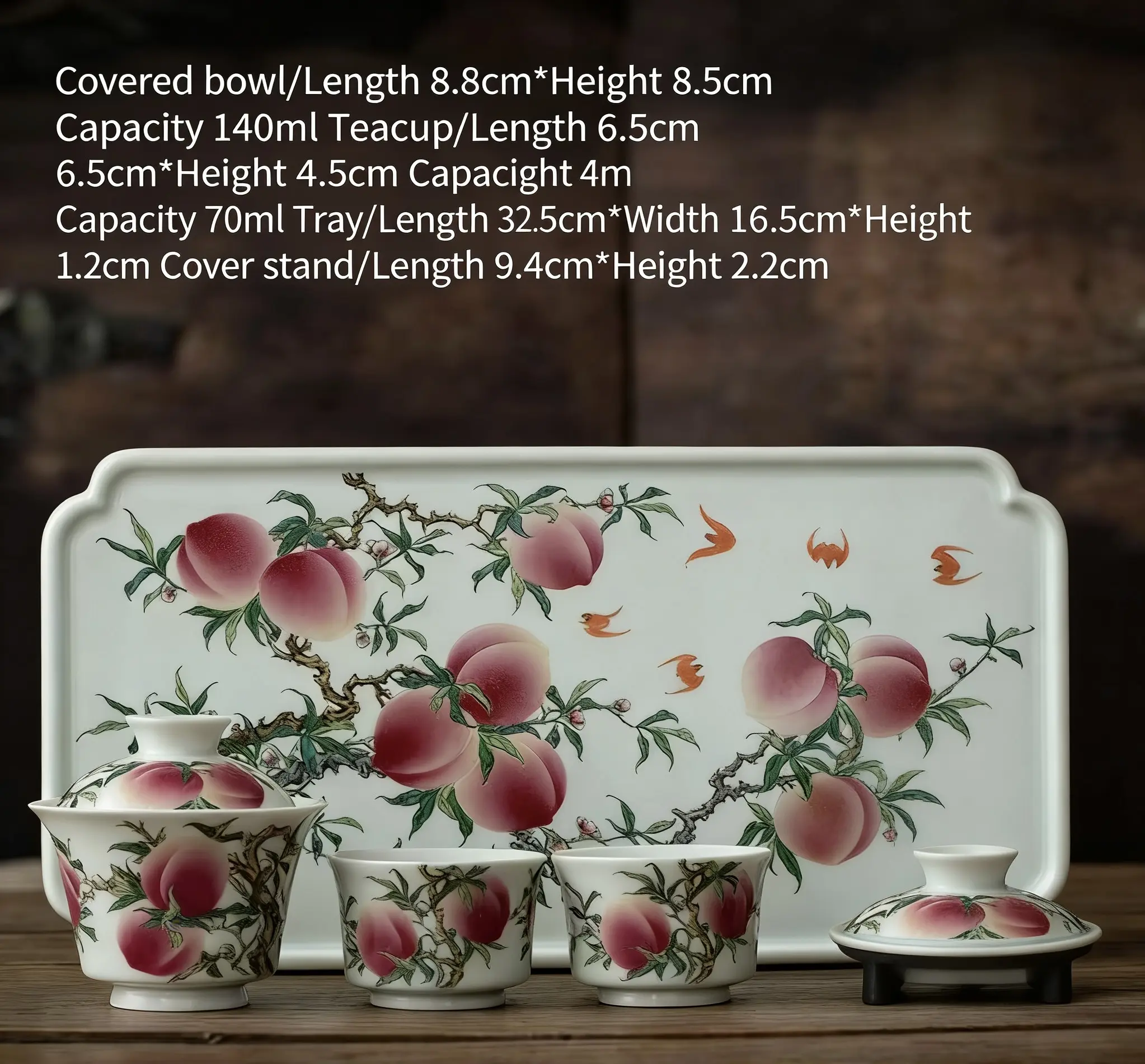 Underglaze craftsmanship ensures the pattern is firm, fade-resistant, and less prone to wear, delivering lasting beauty. The classic nine peach pattern carries auspicious meaning, featuring an elegant appearance and a comfortable touch.