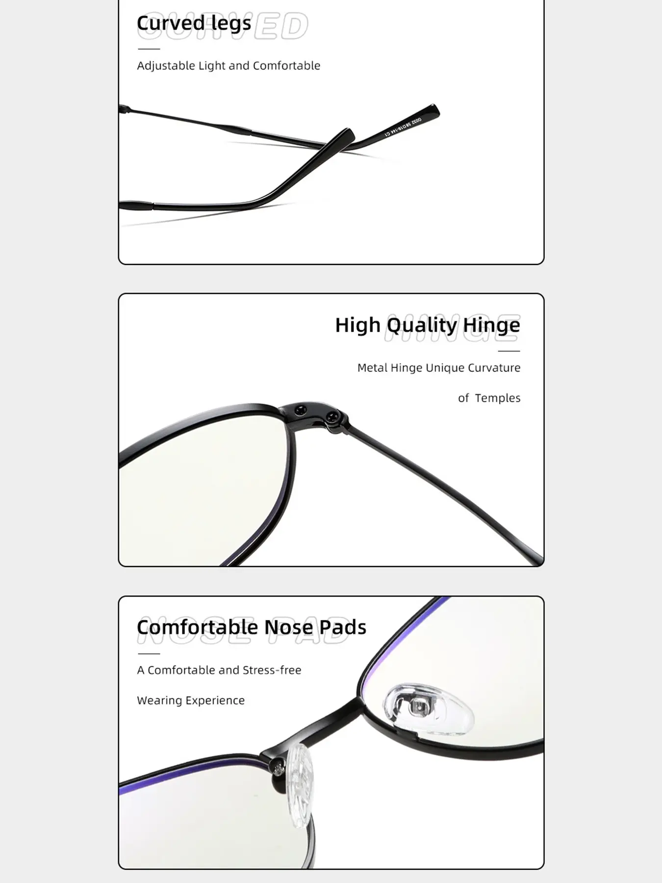 【Interchangeable Lenses】: Allows for easy replacement of prescription lenses, providing flexibility and convenience.