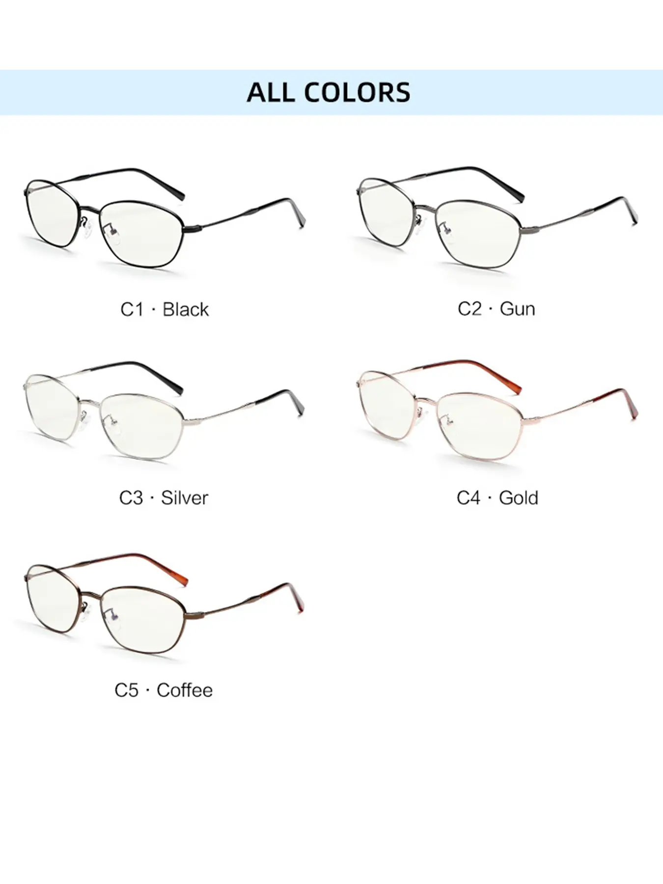 Mira Women's Simple Metal Frame Blue Light Blocking Glasses, Fashion Retro Oval Frame, Unisex Interchangeable Prescription Lenses G032OP