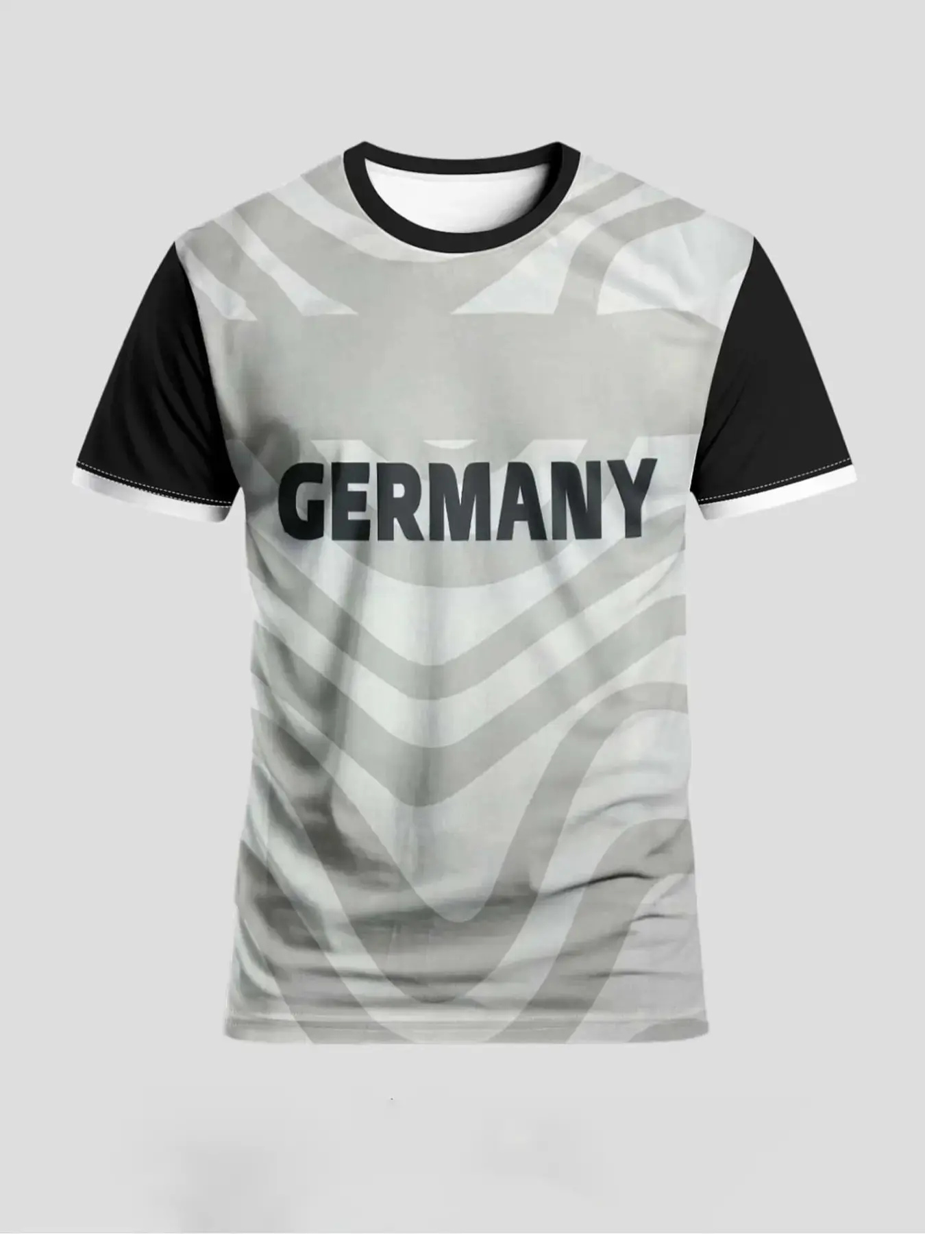 Men's German Football Print T-Shirt, and Germany National Team Style, Round Neck Short Sleeve Top, Sporty Loose Fit