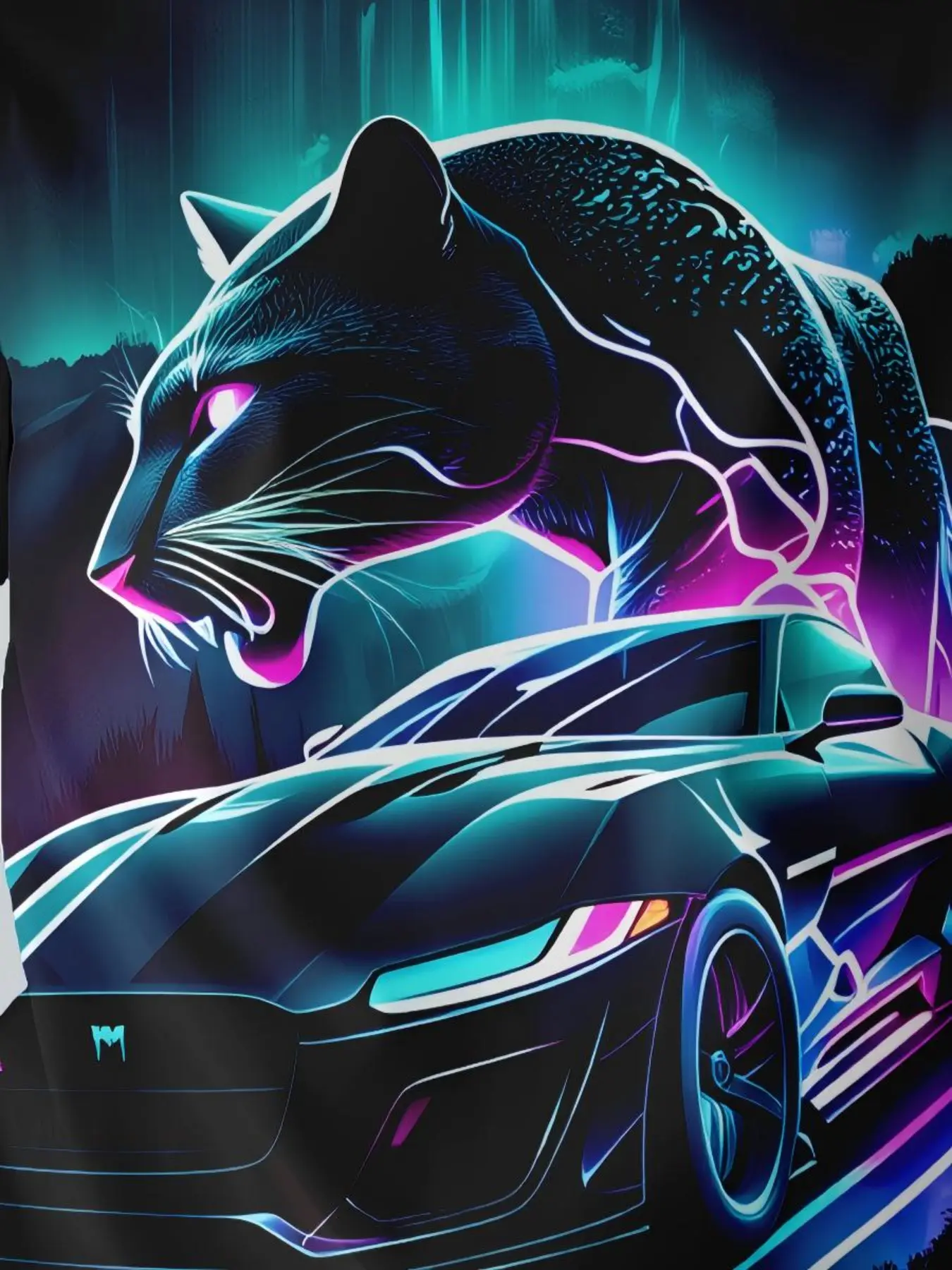 【Neon Panther Print】: Features a vibrant neon panther and car pattern, perfect for a cyberpunk streetwear look.