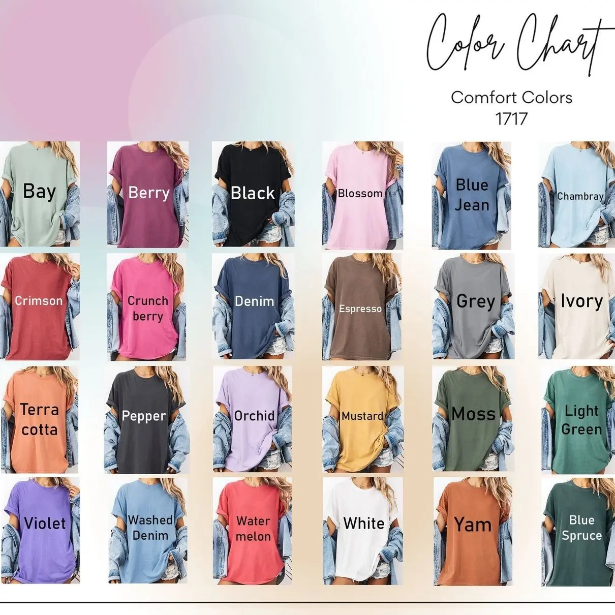 ·Comfort Colors®: 100% Ring-Spun Cotton (soft-washed, garment-dyed)