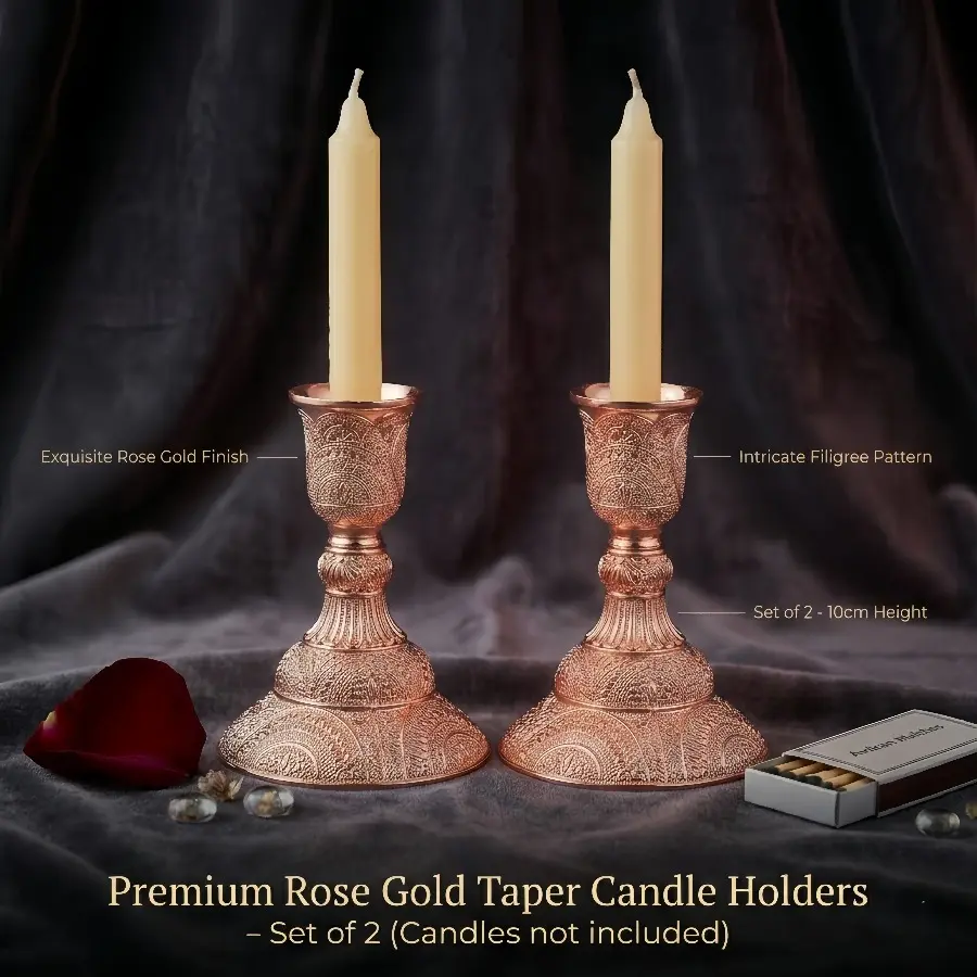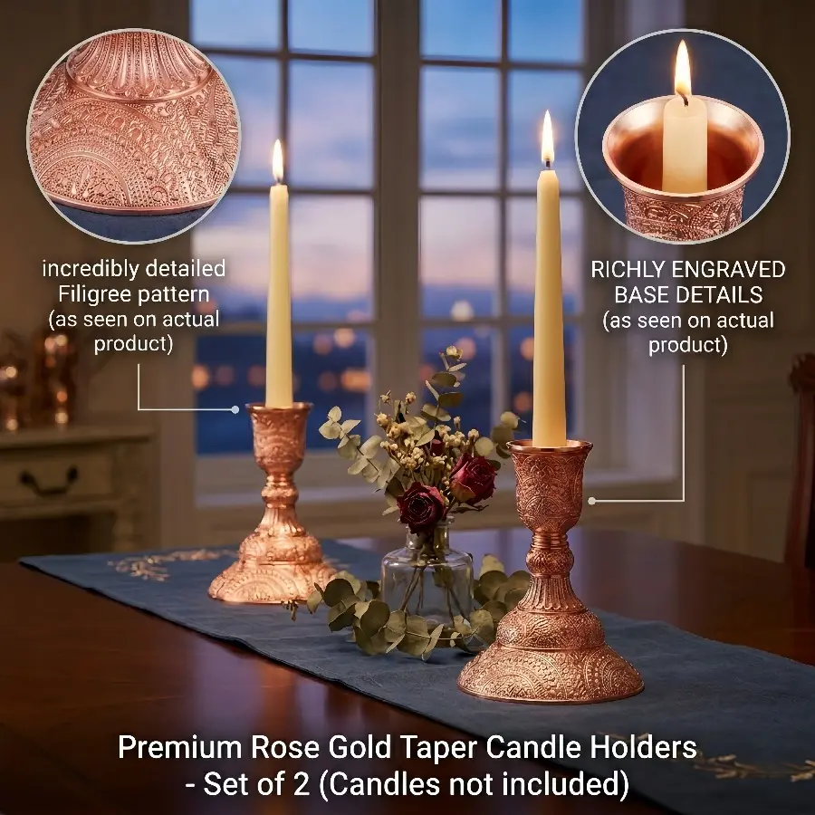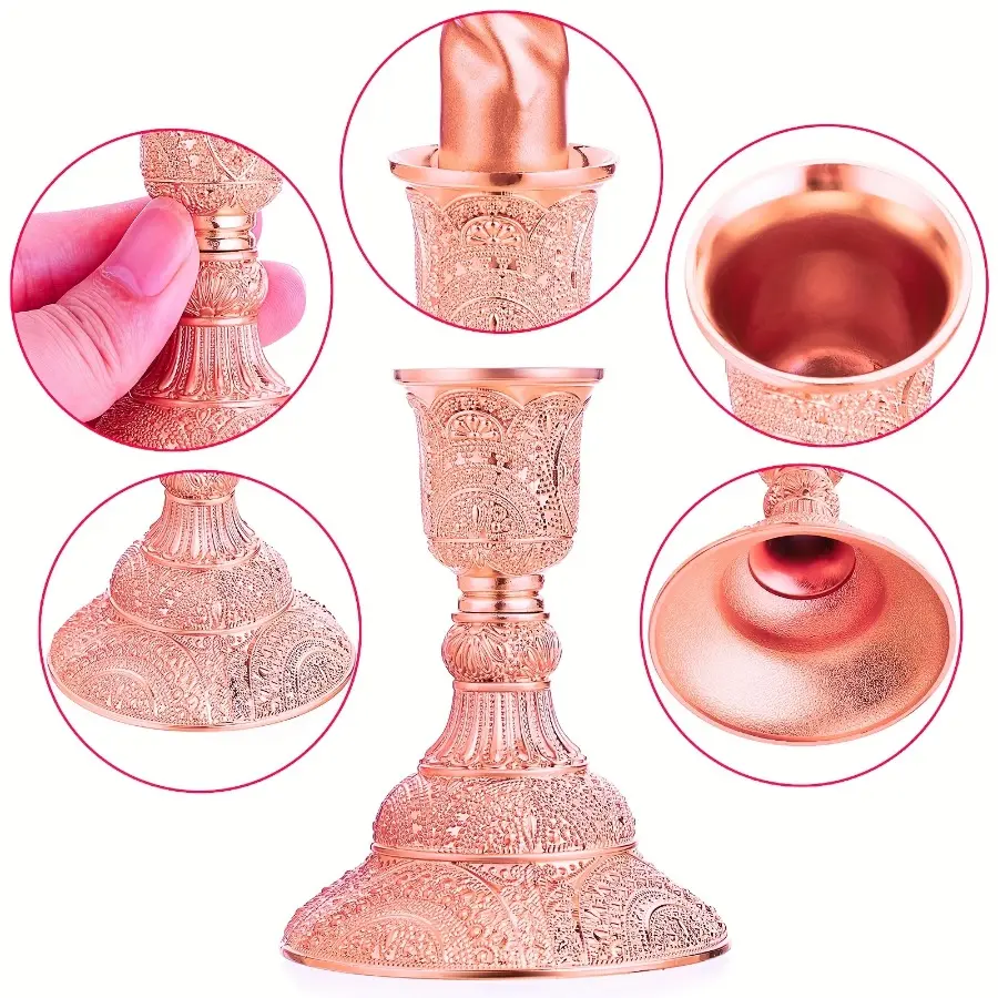 5. Set of 2 Rose Gold Metal Candle Holders, Peacock Feather Pattern Candle Stand, Taper Candle Holder, Halloween Christmas Holiday Decoration Candle Holder Gifts, Wedding Centerpieces, Event Decoration.