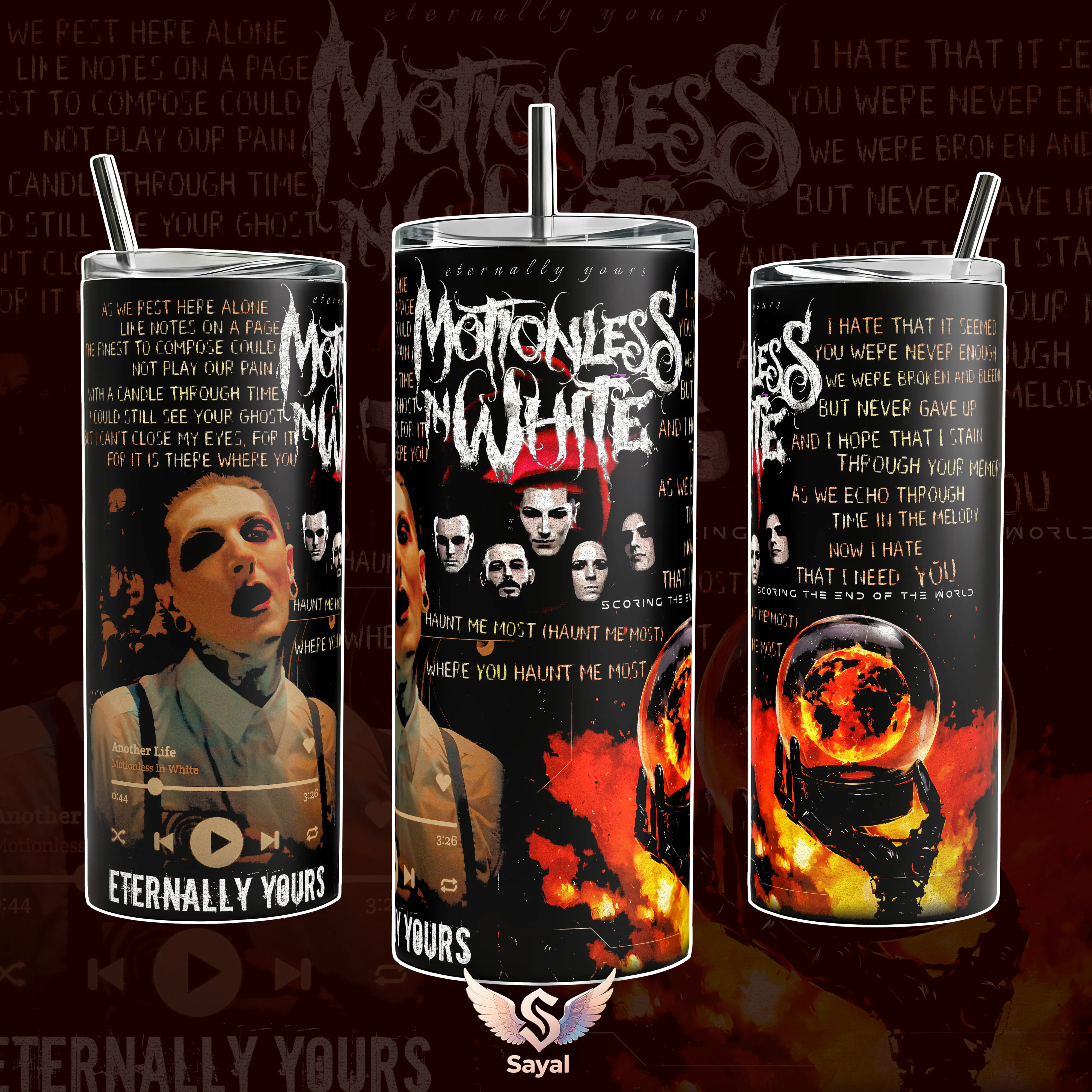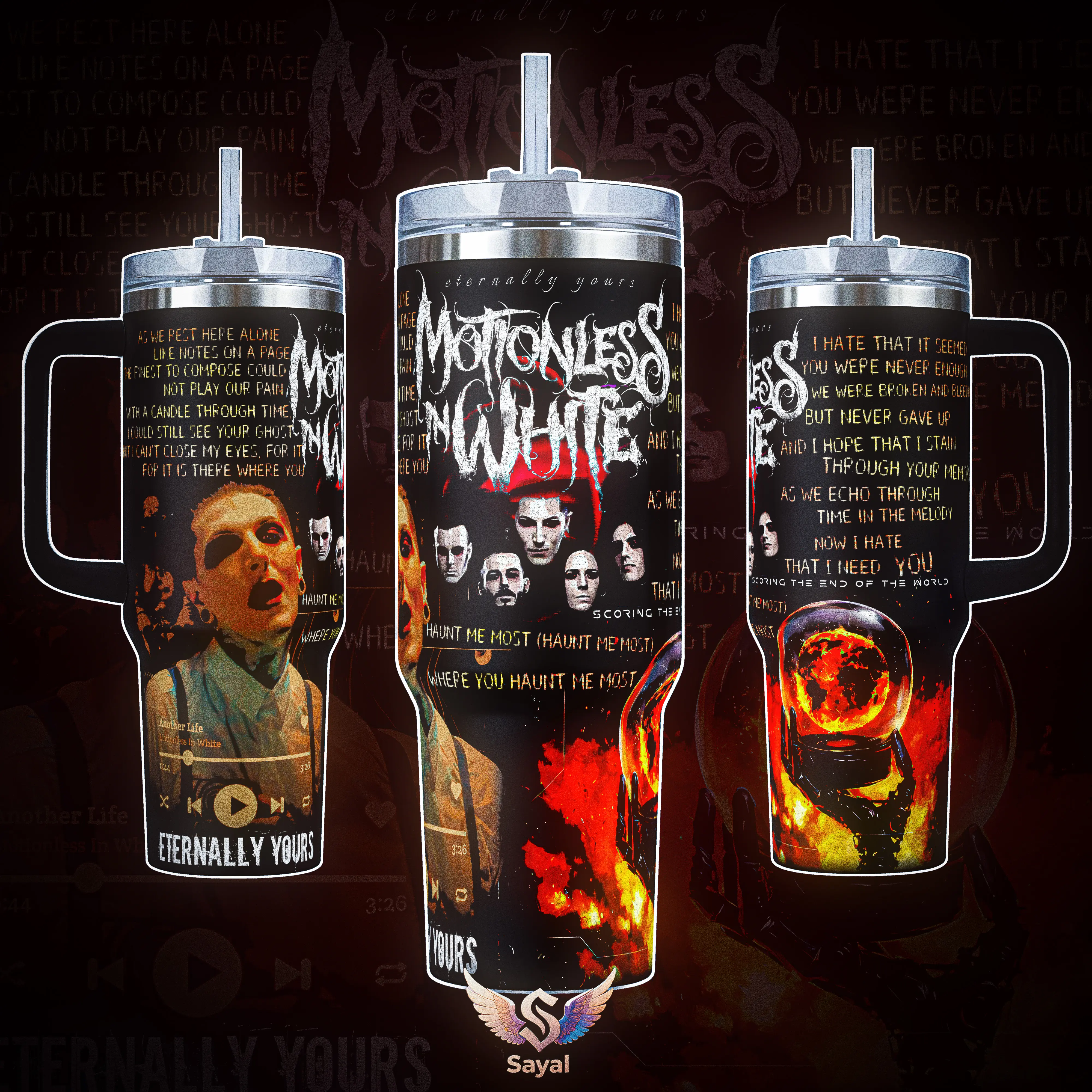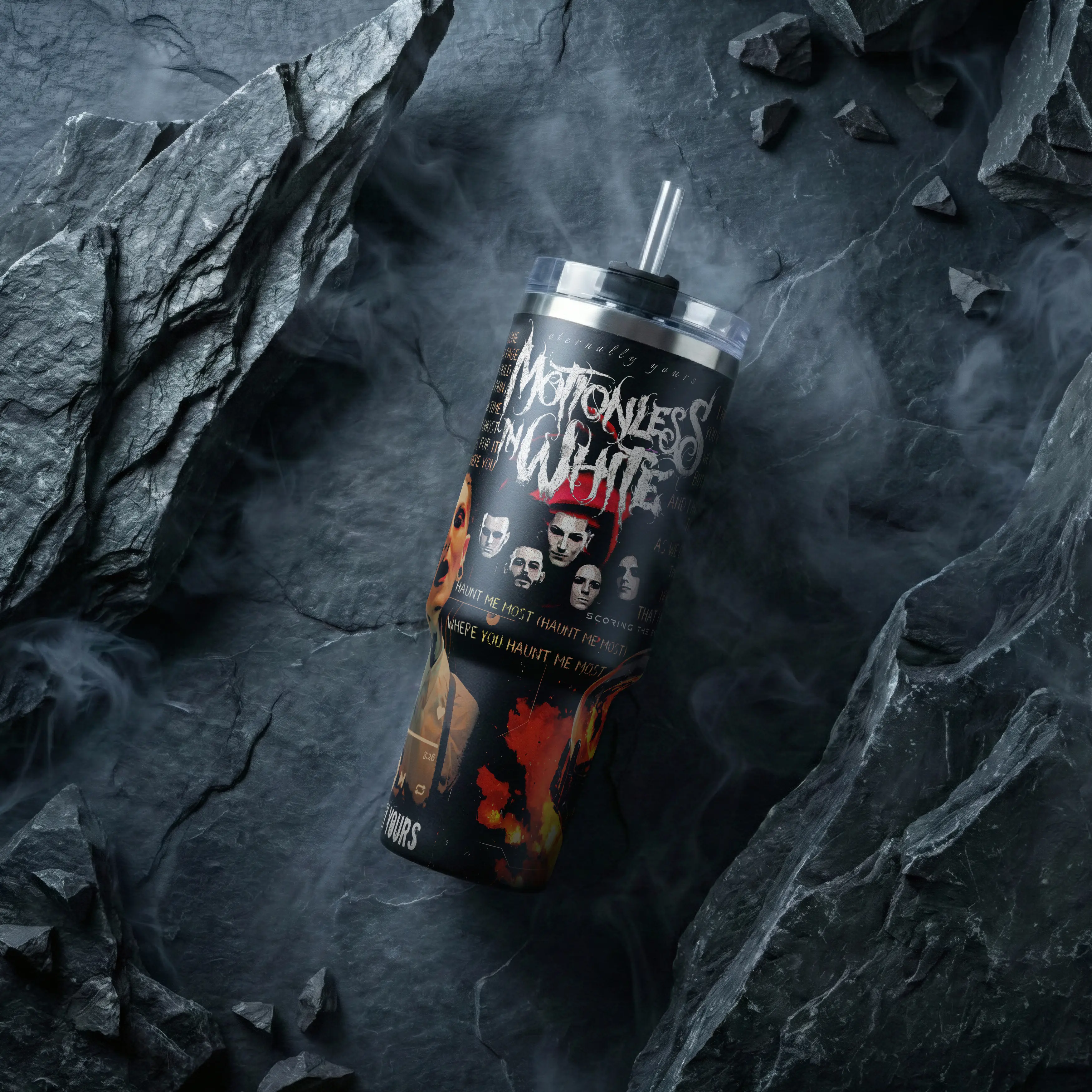 Eternally Yours Motionless In White MIW 40 oz Vacuum Insulated Tumbler with Handle Straw Haunt Me Most Lyrics Graphic Keeps Drinks Hot/Cold 12H 18/8 Stainless Steel Travel Mug Metal Fans Alternative Music Lovers Dark Aesthetic Merch Gift