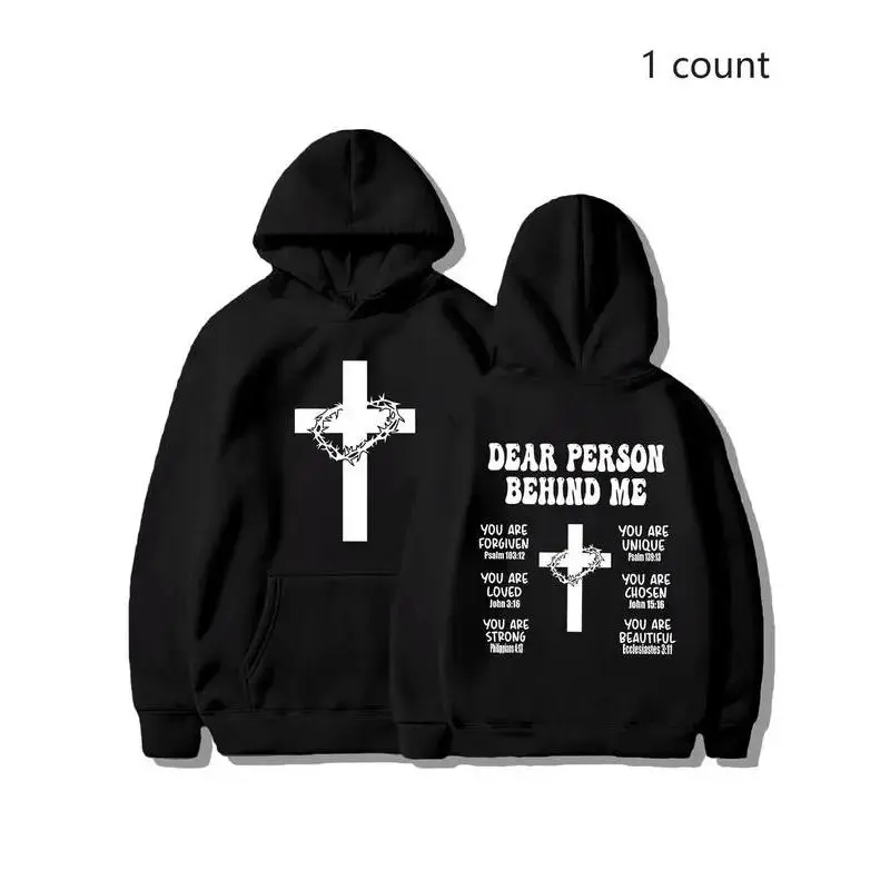 ✝️Celebrate your faith with this Christian Bible Verse Hoodie🕊️!Featuring a bold cross graphic and inspirational Bible verse, this unisex pullover is perfect for fall and winter daily wear, streetwear style, church gatherings, or casual outings😎