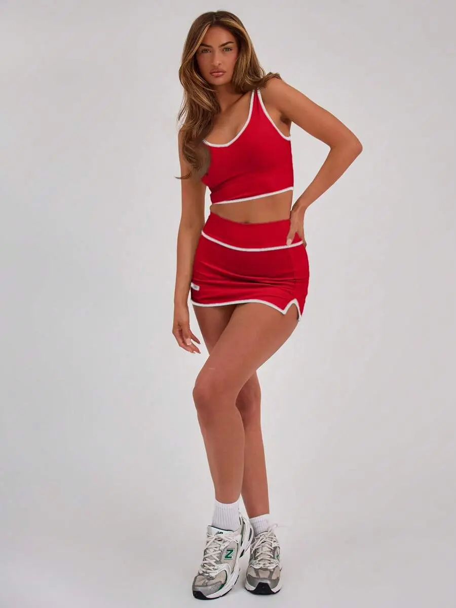 DORRIS Sport Contrast Binding Detail Small Split Sports Gym Skort Only, Padel Tennis Racquetball Pickleball Gym Fitness Winter