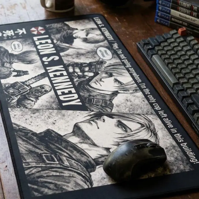 Resident Evil Gaming Mousepad, Large RE4 Mouse Pad, Japanese Anime Mousepad, Leon Kennedy Desk Mat, Anime TCG Playmat