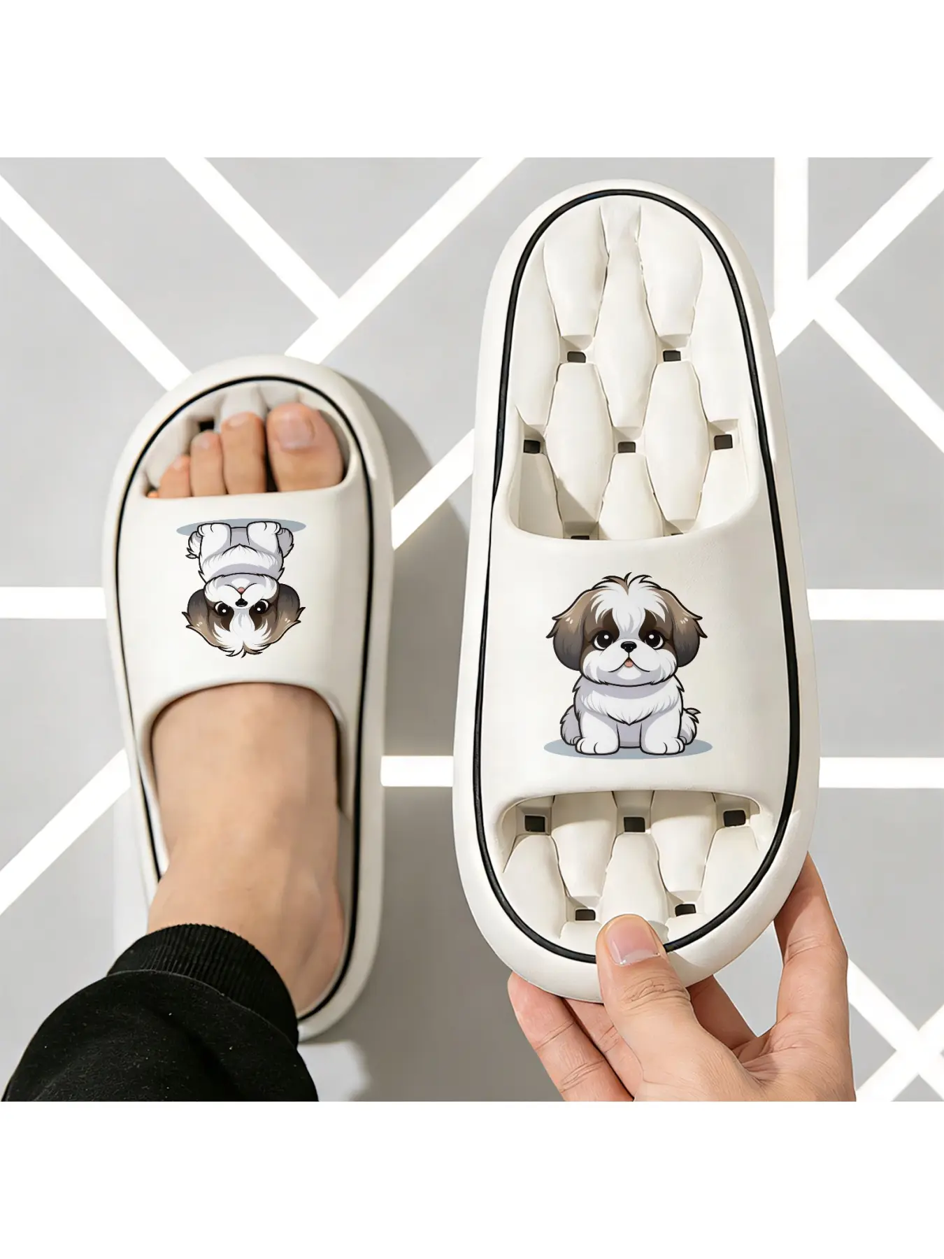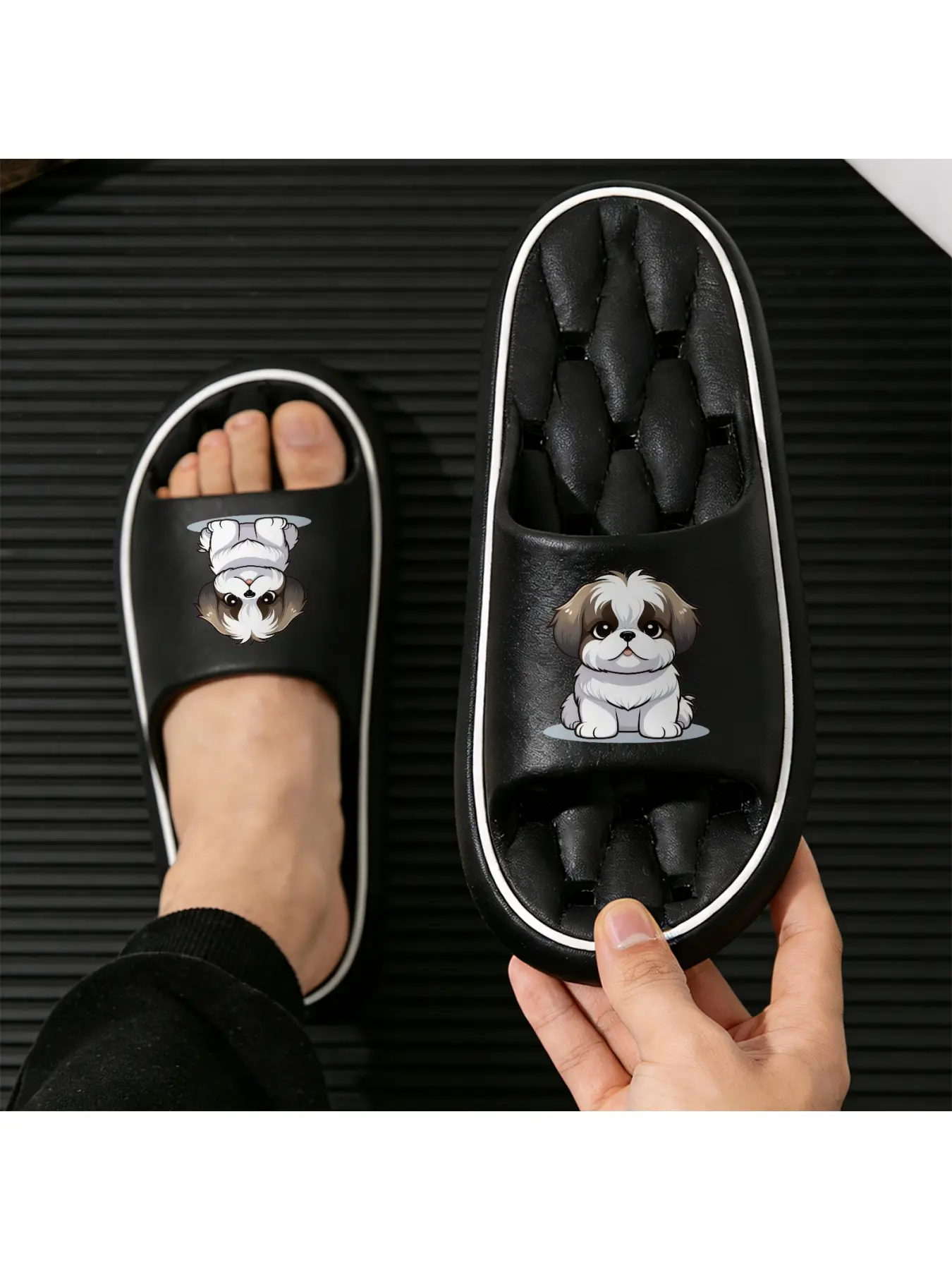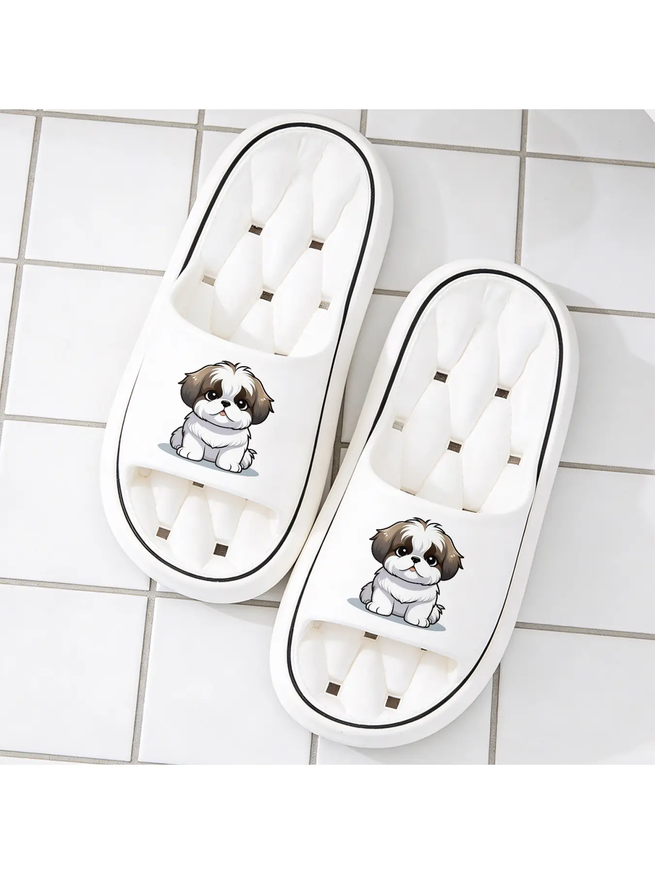 Cute Shih Tzu Print Quick-Dry Hollow Out Slide Slippers, Non-Slip Bathroom Shower Shoes, Soft Cushioned Home Sandals for Dog Lovers