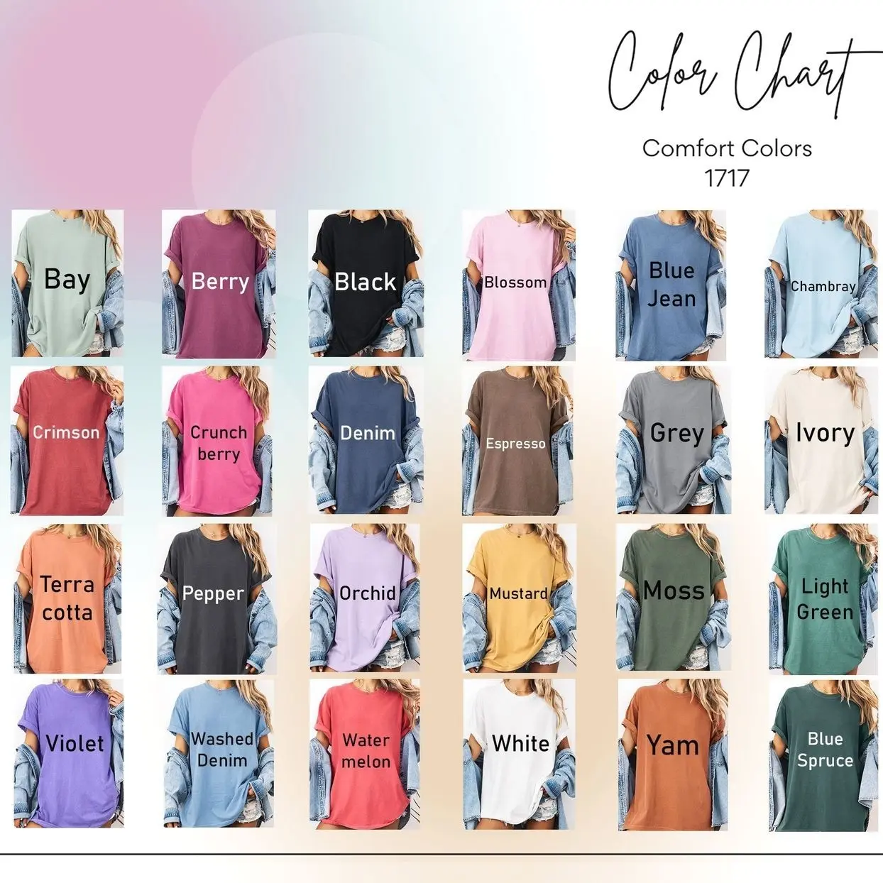 ·Comfort Colors®: 100% Ring-Spun Cotton (soft-washed, garment-dyed)