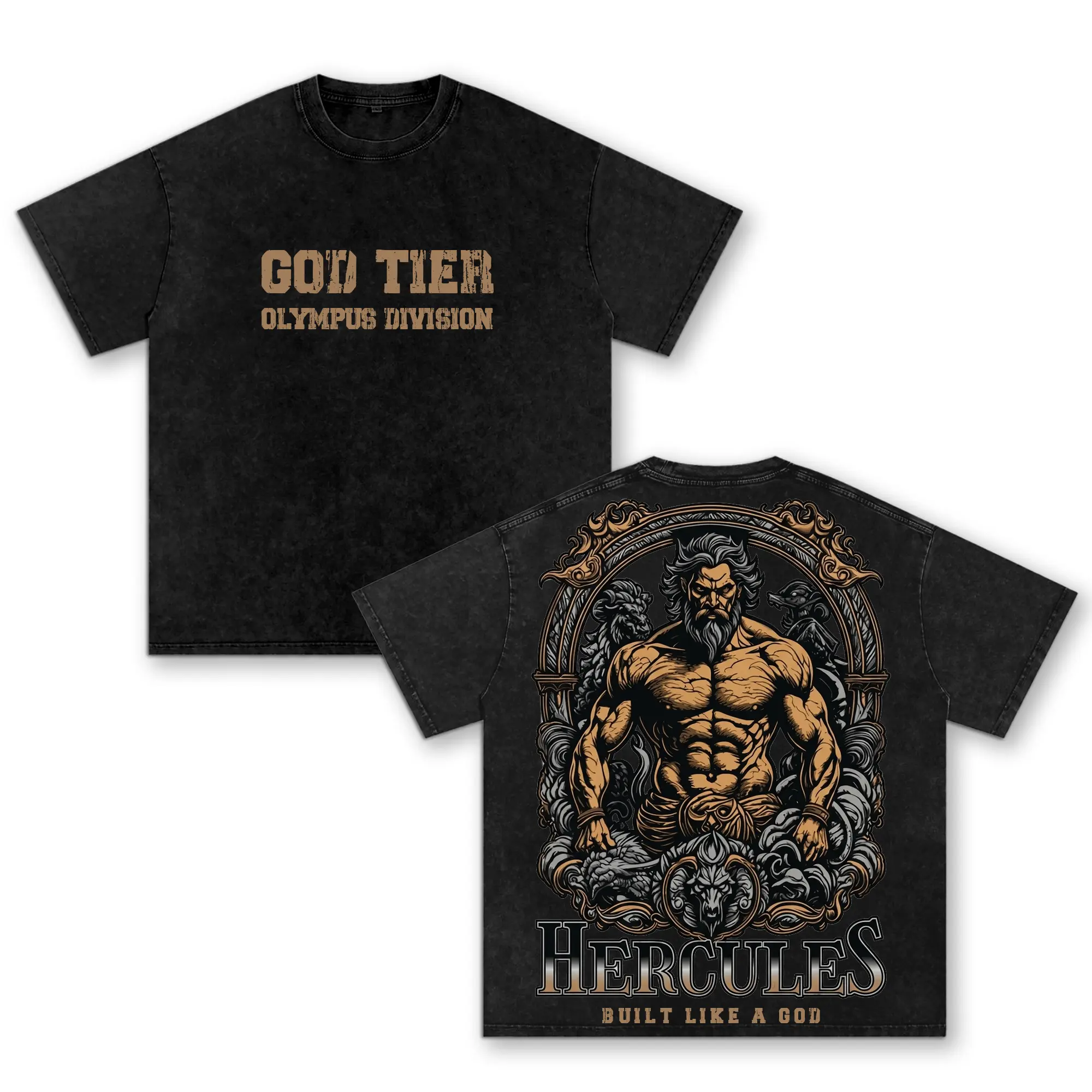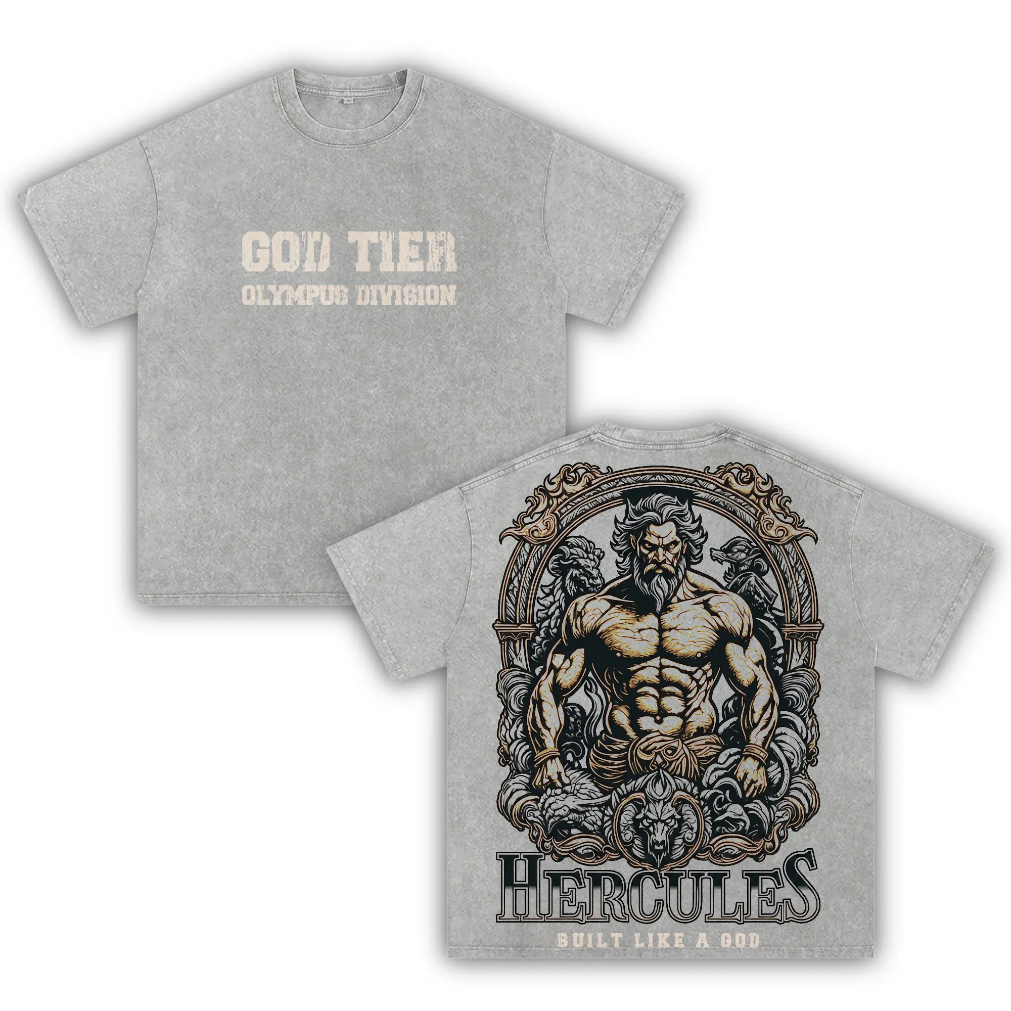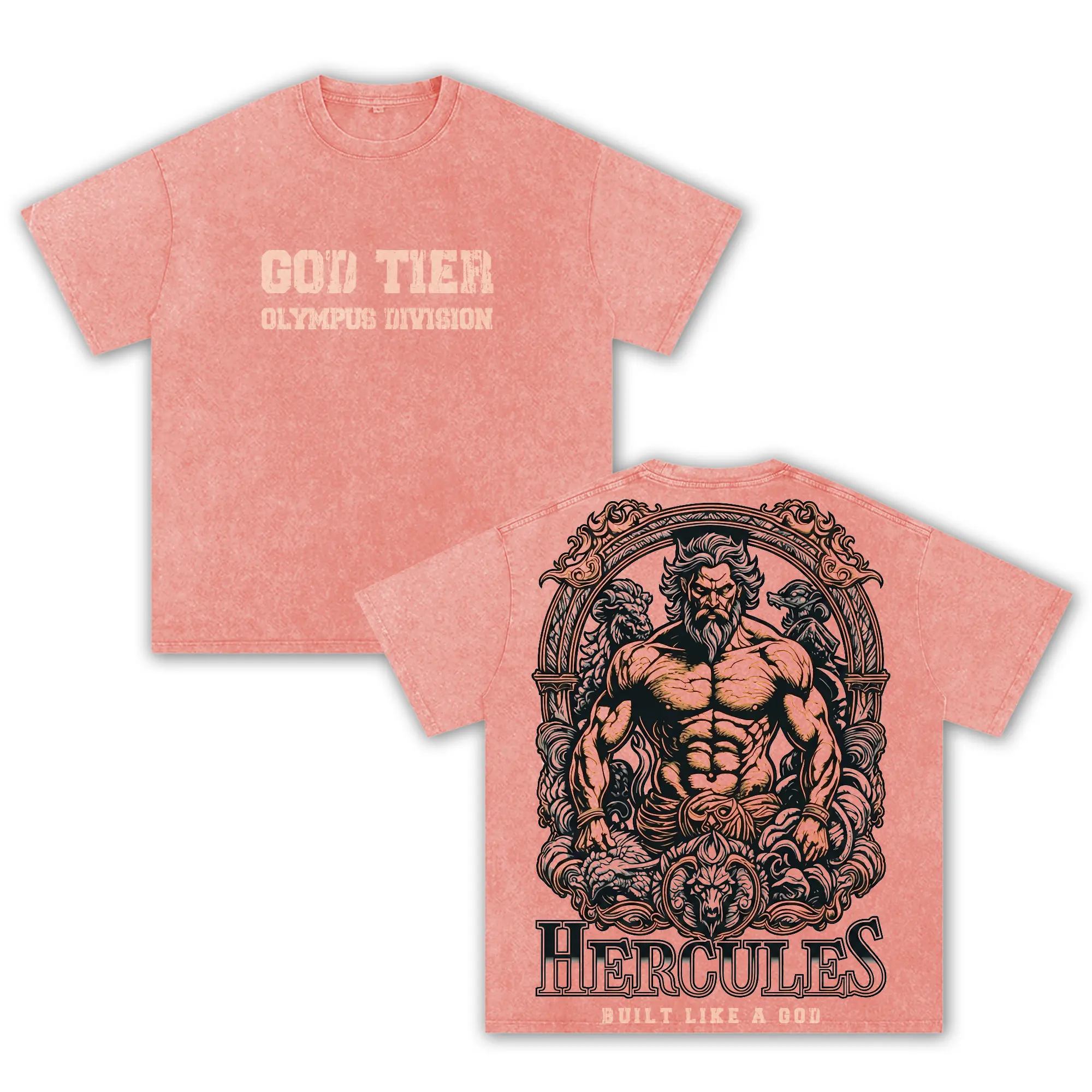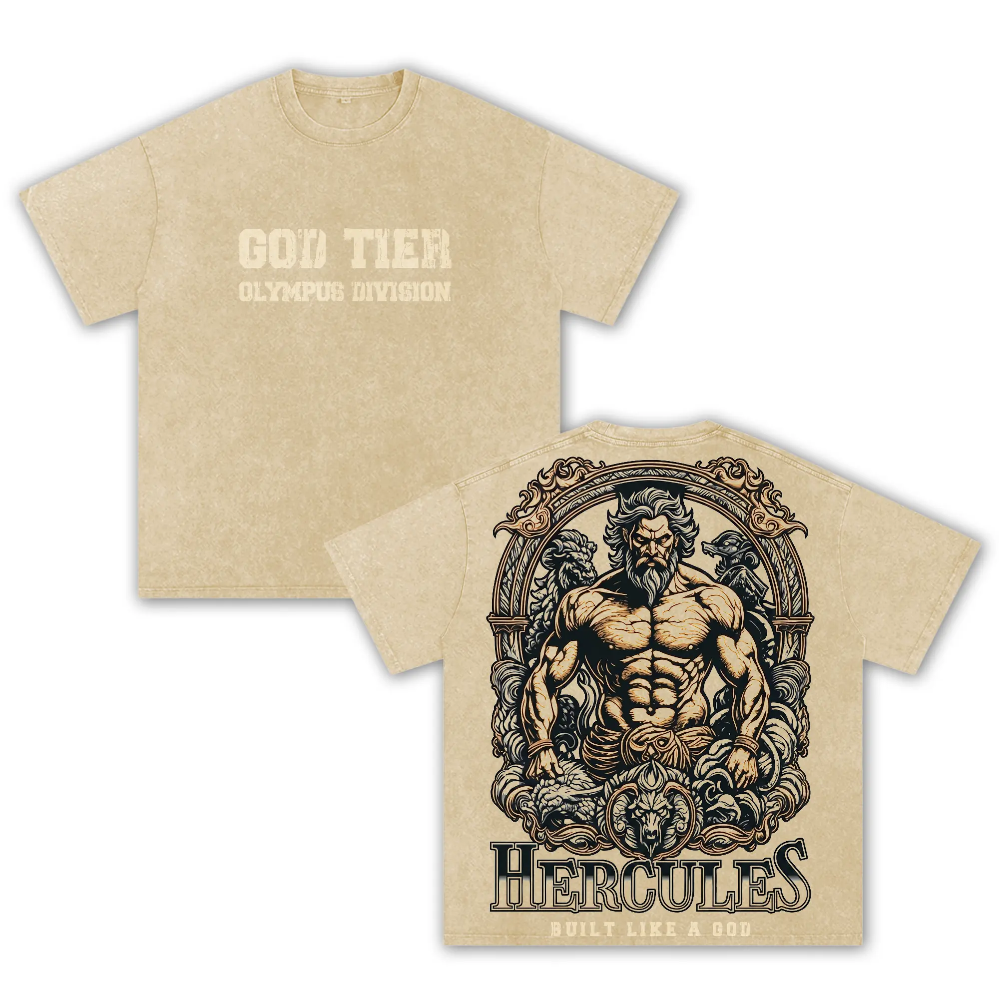 Hercules God Tier Oversized Washed T-Shirt, Olympus Division Gym Graphic Tee, Built Like A God Workout Shirt, Vintage Pump Cover Streetwear