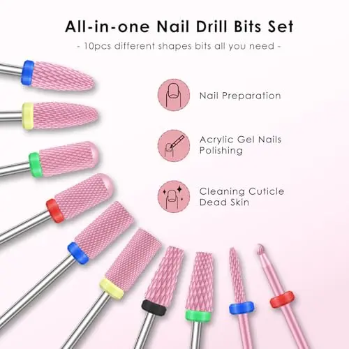 【10pcs Ceramic Drill Bits】This nail bits for nail drill include 4-kinds of texture ceramic nail drill bits: Fine, Medium, Coarse, and Special rough grinding patterns. They can adapt to different strengths to accomplish varied professional nail jobs. Suitable for both nail art beginners and professional manicurists