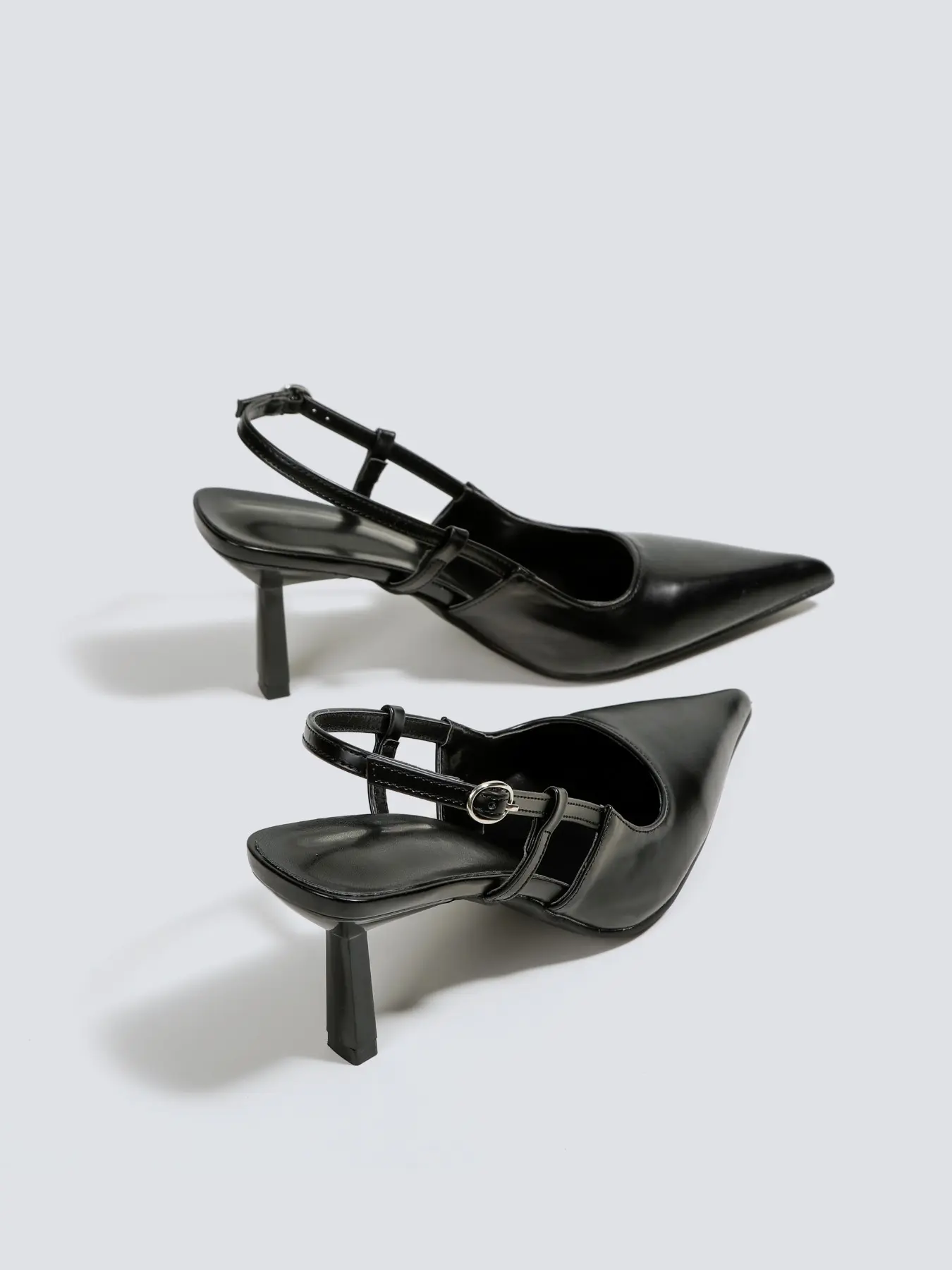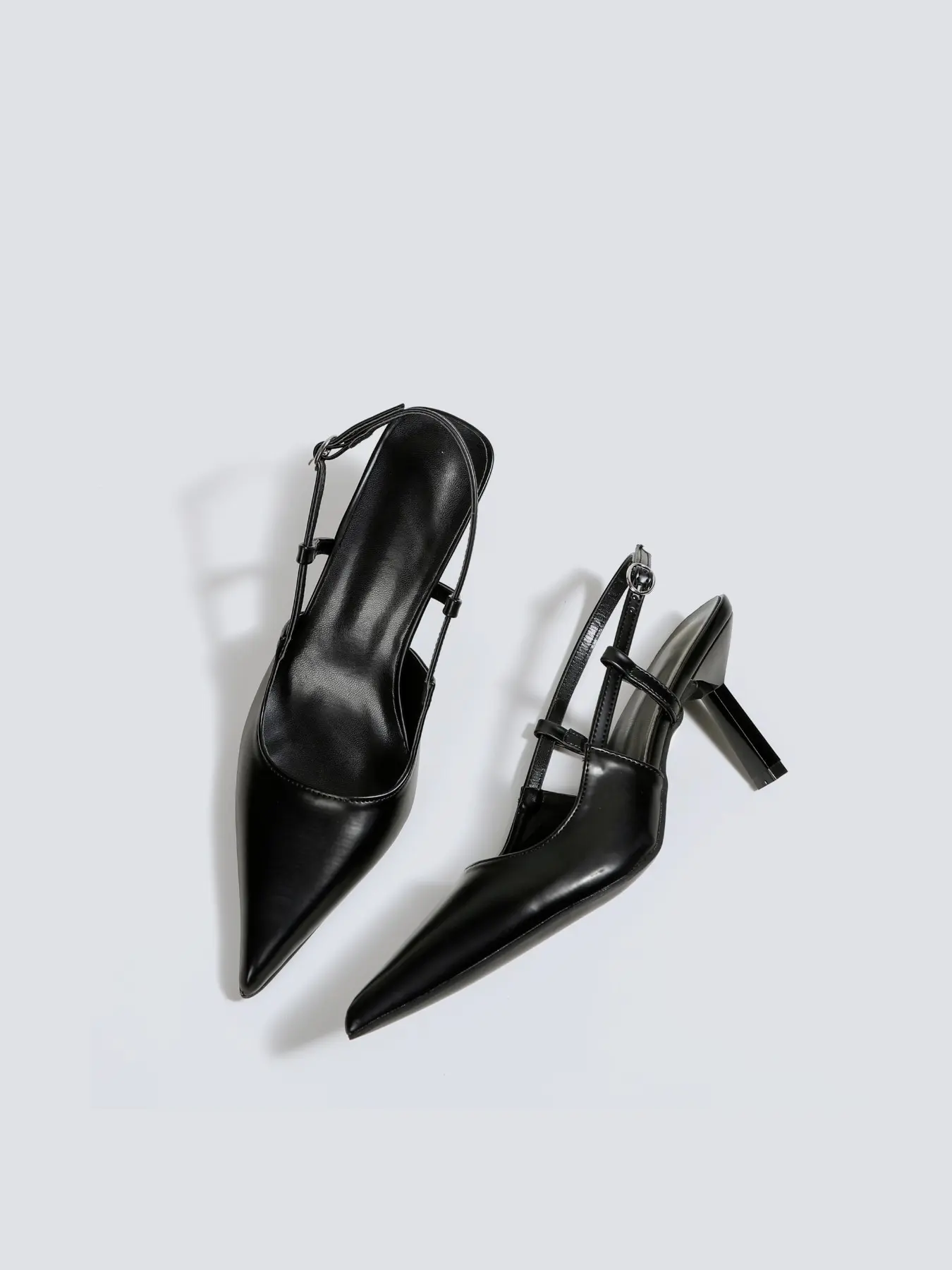 Women's Matte High Heel Shoes, Slip-On Party Wedding Shoes, 7cm Formal Footwear, Pointed Toe Sandals with Back Strap