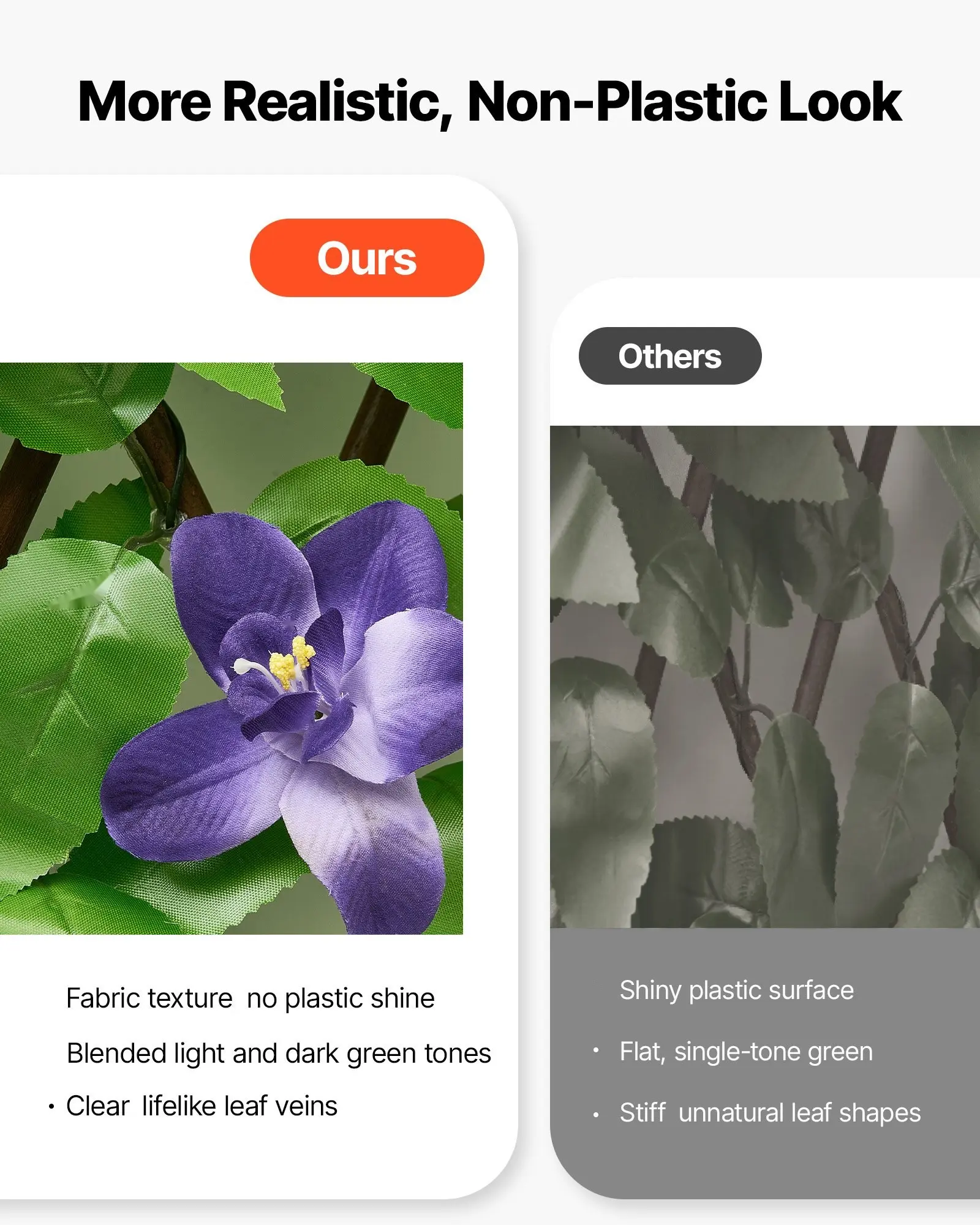 ·High-Density Privacy: Featuring 340 fabric leaves and 32 flowers, 30 real willow-wood slats, this artificial plant wall provides effective screening for second-floor terraces or backyard fences, helping protect privacy while creating a greenery backdrop