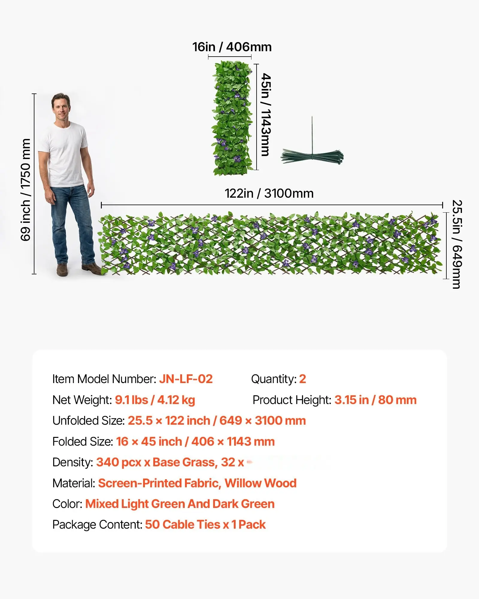 ·Expandable & Foldable Design: This grass wall can be fully folded with minimal gaps for complete coverage or expanded to allow clear outward visibility, maintaining privacy by limiting views from neighbors and passersby