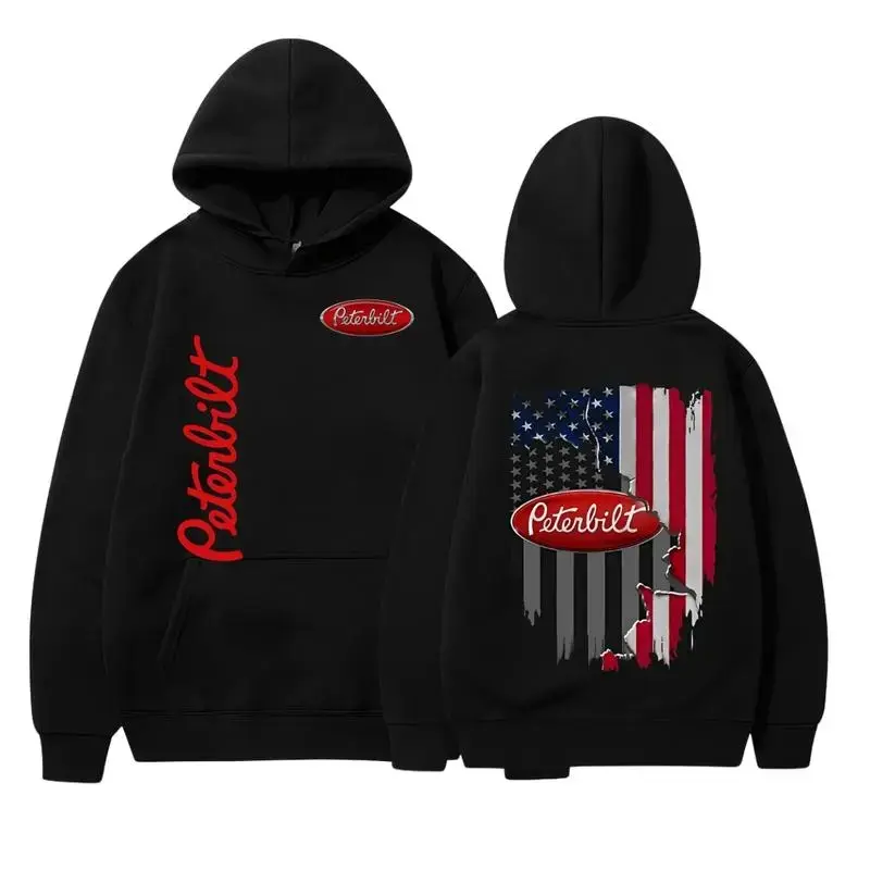5. Peterbilt 2side Hoodie – American Flag Semi Truck Graphic Sweatshirt, Trucker Rig Outfit, Vintage Highway Pullover for Men and Girl, Unisex Classic Truckwear