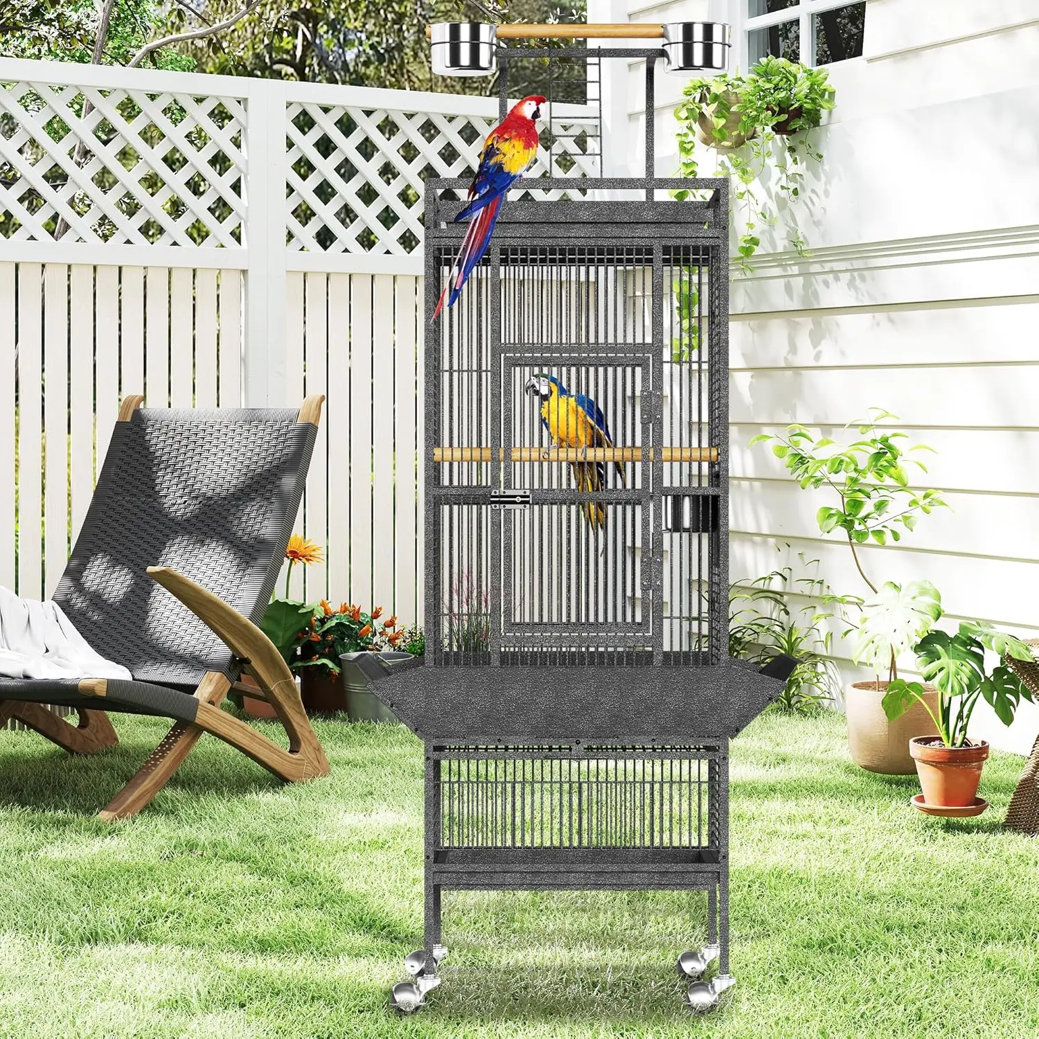 • Smooth Mobility with 360° Casters: Four 360° swivel casters allow you to easily roll this bird cages unit for sunlight, cleaning, or rearranging your living space. The mobile large bird cage adapts to your needs effortlessly