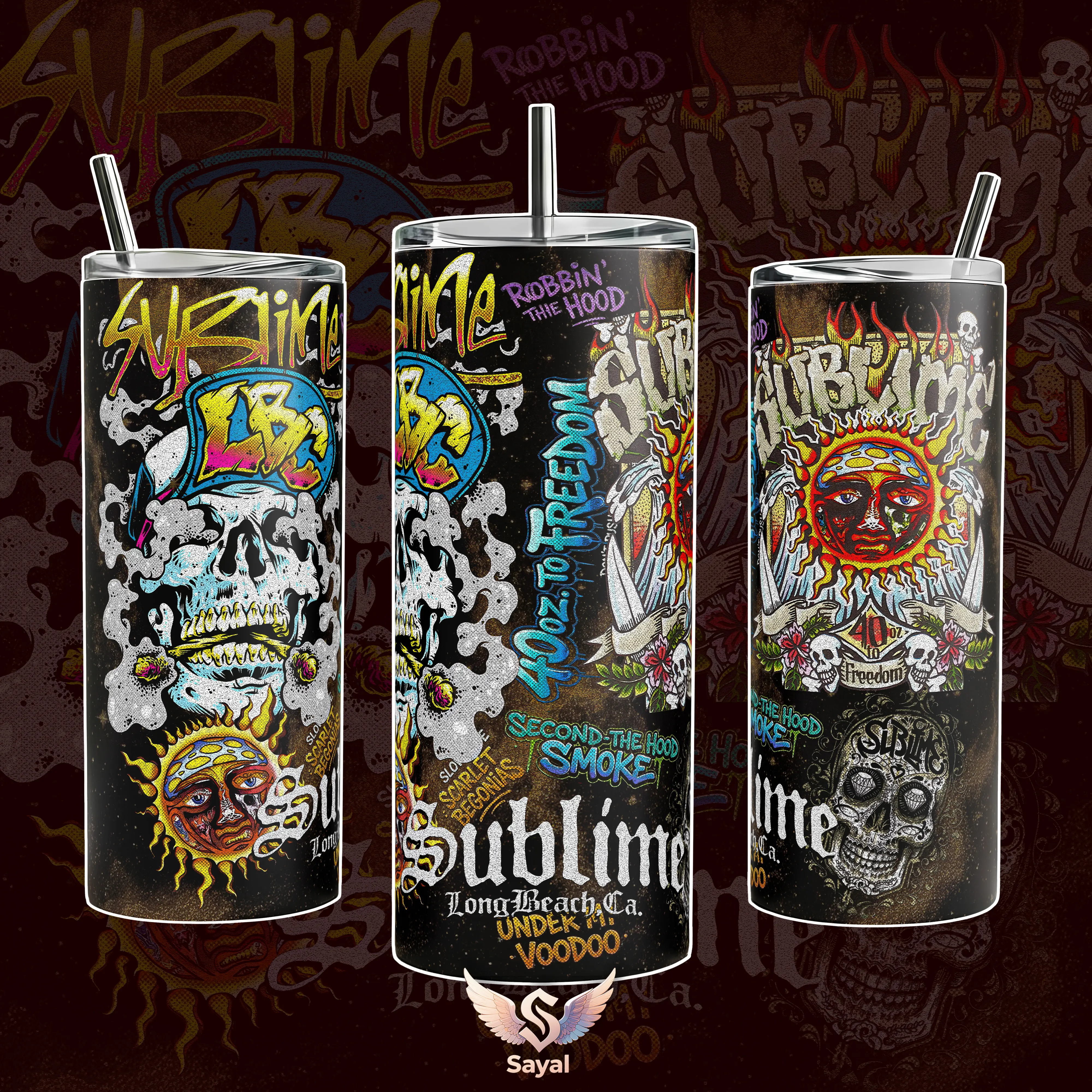 Sublime Band 40 oz To Freedom Vacuum Insulated Tumbler with Handle & Straw Robbin' the Hood Graffiti Skull Sun Art Keeps Drinks Hot/Cold 12H+, 18/8 Stainless Steel Travel Mug for Ska Punk Fans Reggae Rock Lovers Long Beach CA Music Merch Gift