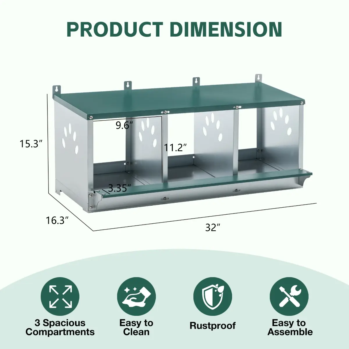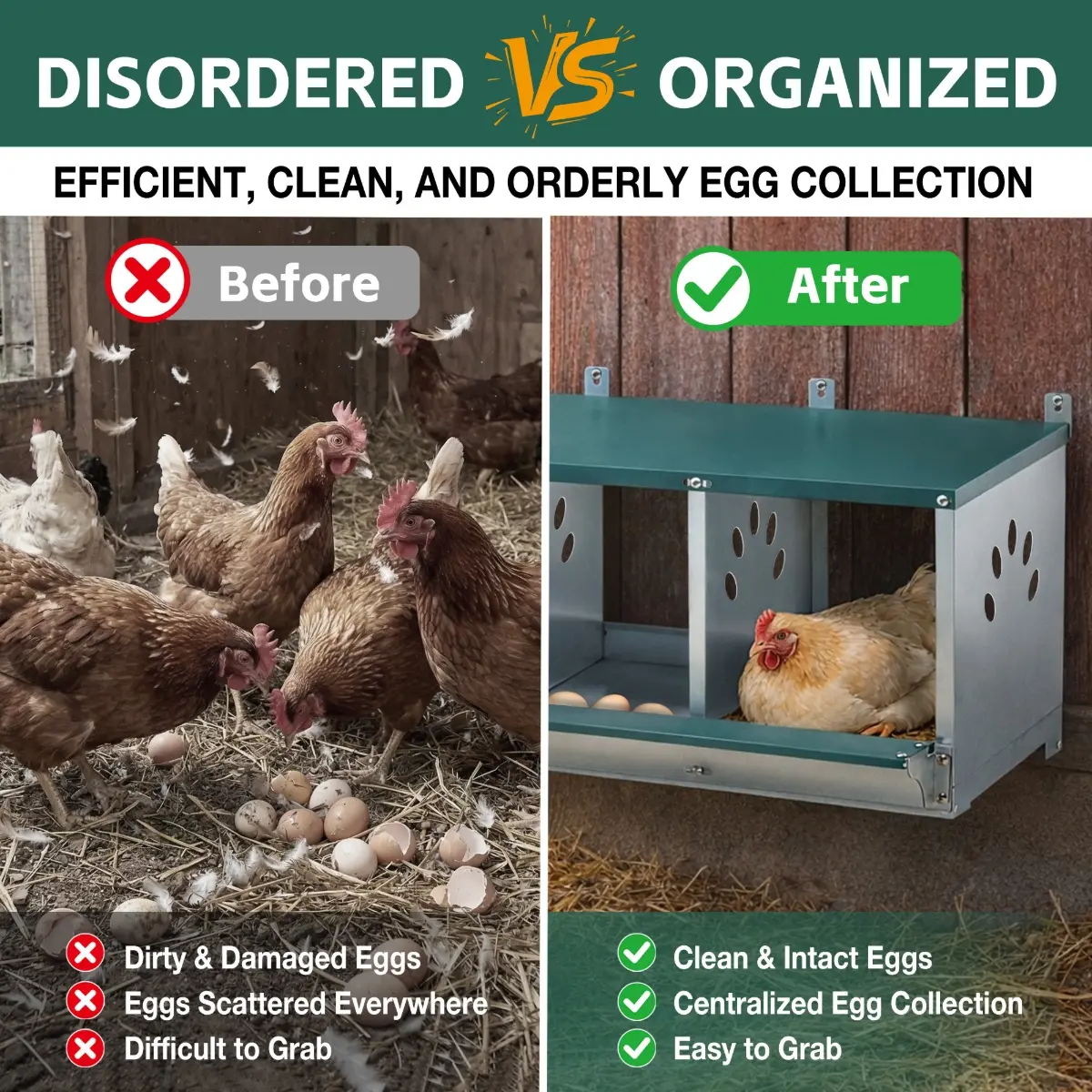 【Versatile and Compatible】Whether you have a small backyard flock or a larger poultry operation, our nesting boxes is adaptable to various coop sizes and layouts. Its universal design and compatibility make it an ideal choice for chicken enthusiasts of all levels.