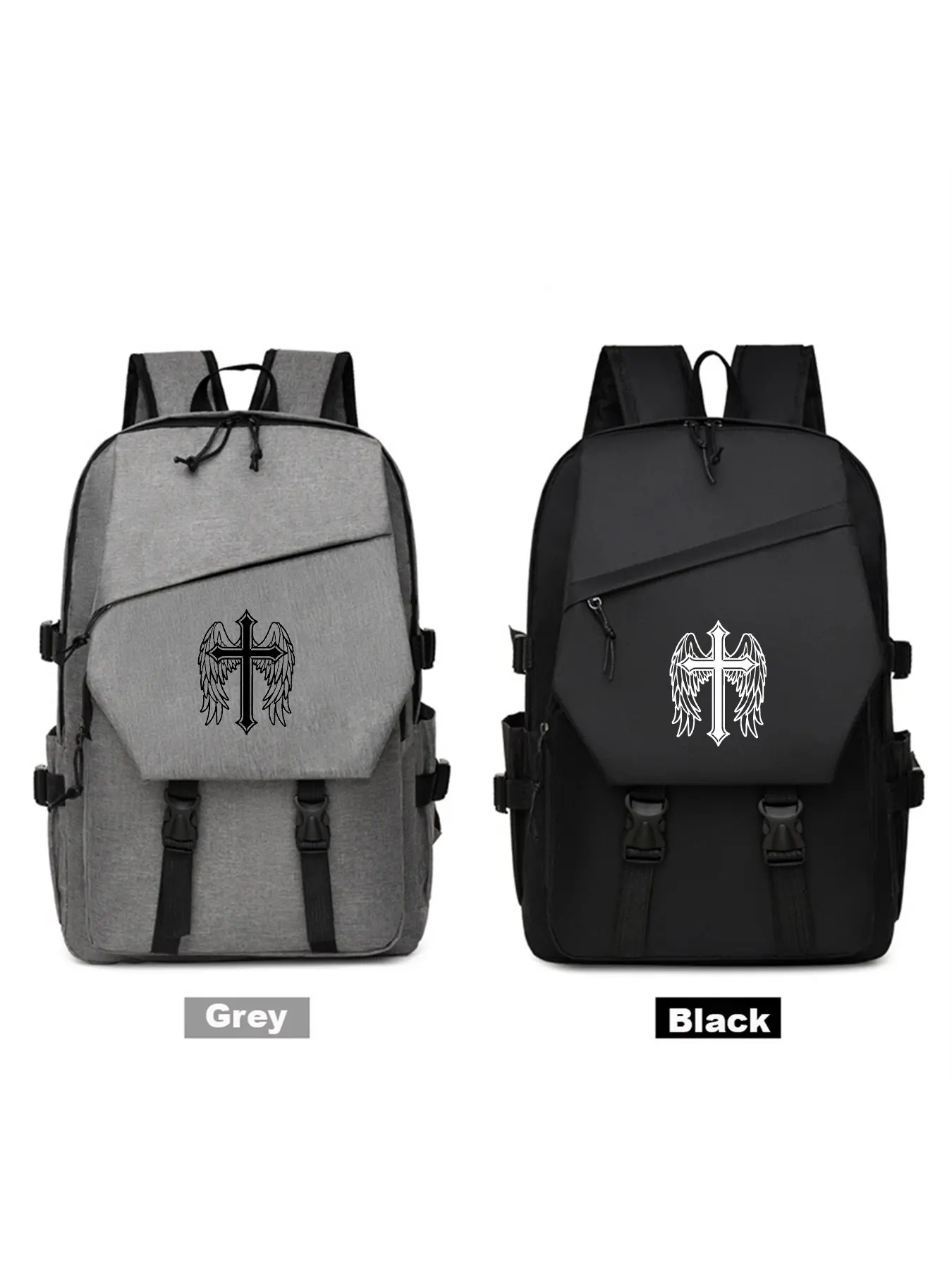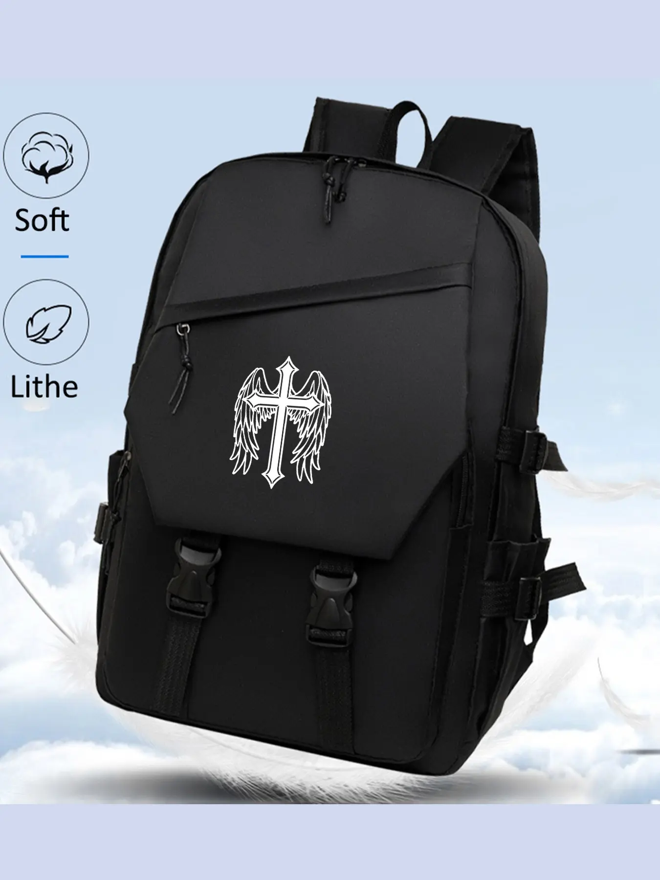 Cross Wings Print Backpack, Large Capacity Waterproof Laptop Bag, Casual School & Business Bag, Unisex, All Seasons
