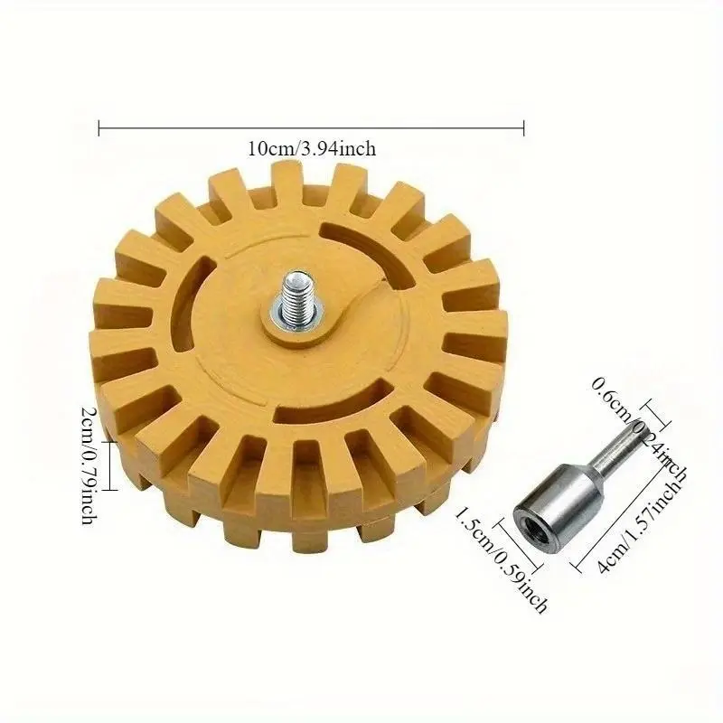 1pc Gear Design Rubber Eraser Wheel, Remove Pinstripes, Stripes, Decal And Adhesive Remover Tool, Stickers, Tape And Graphics On Car, RVs, Boat And Trucks 4-inches Diameter With Drill Adapter