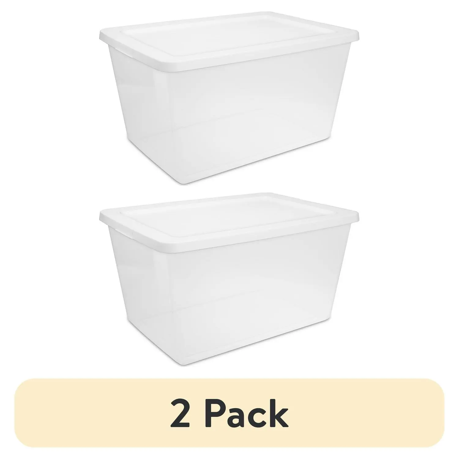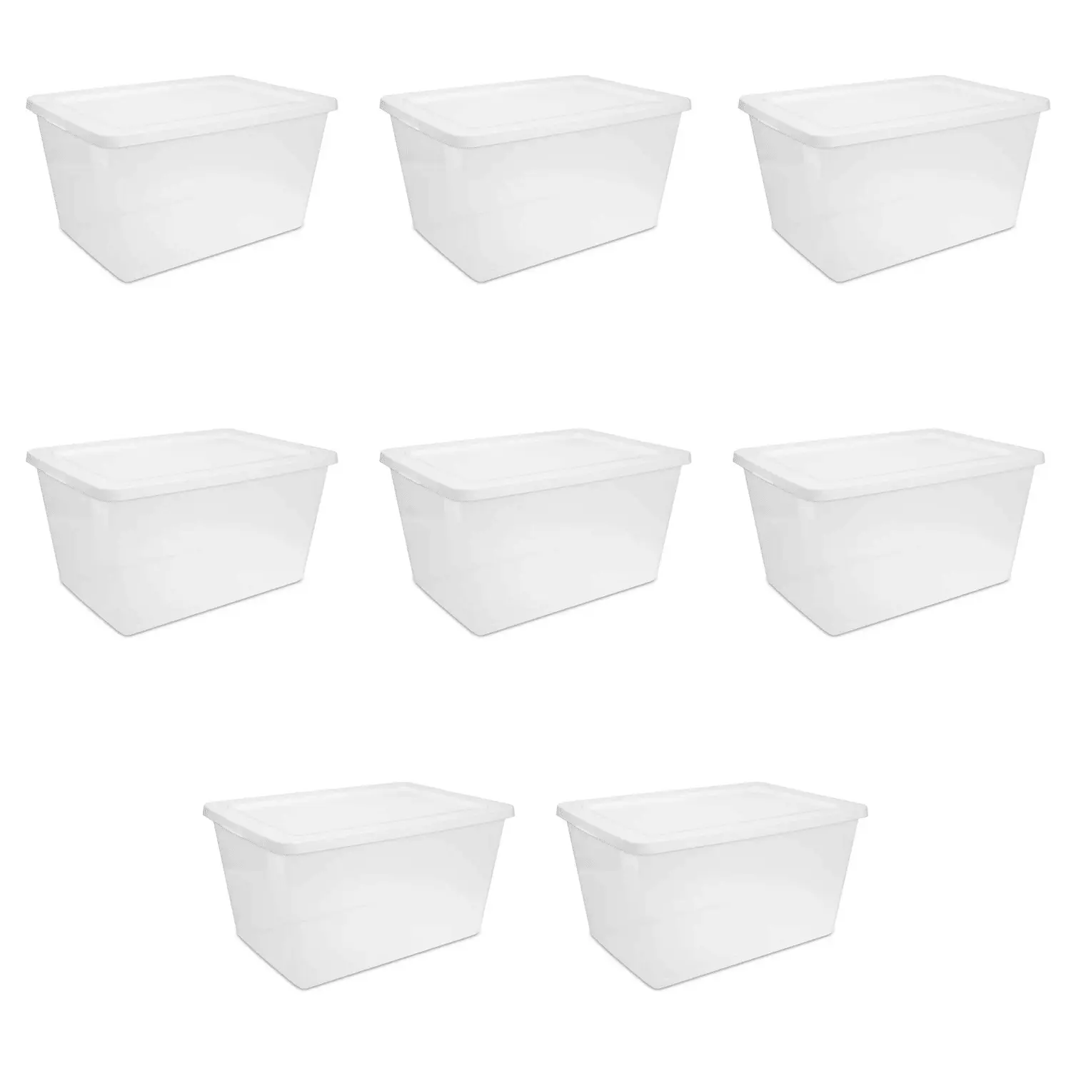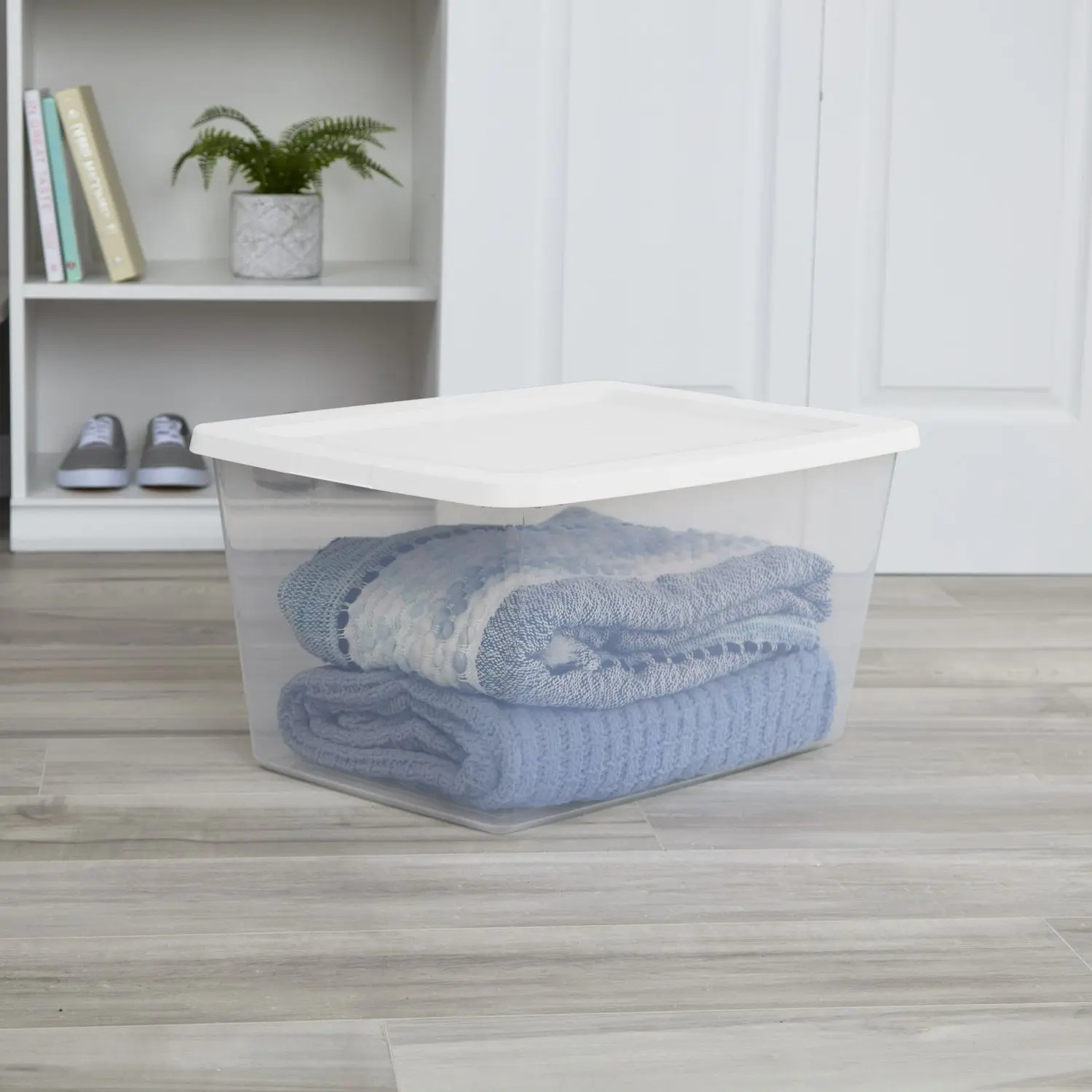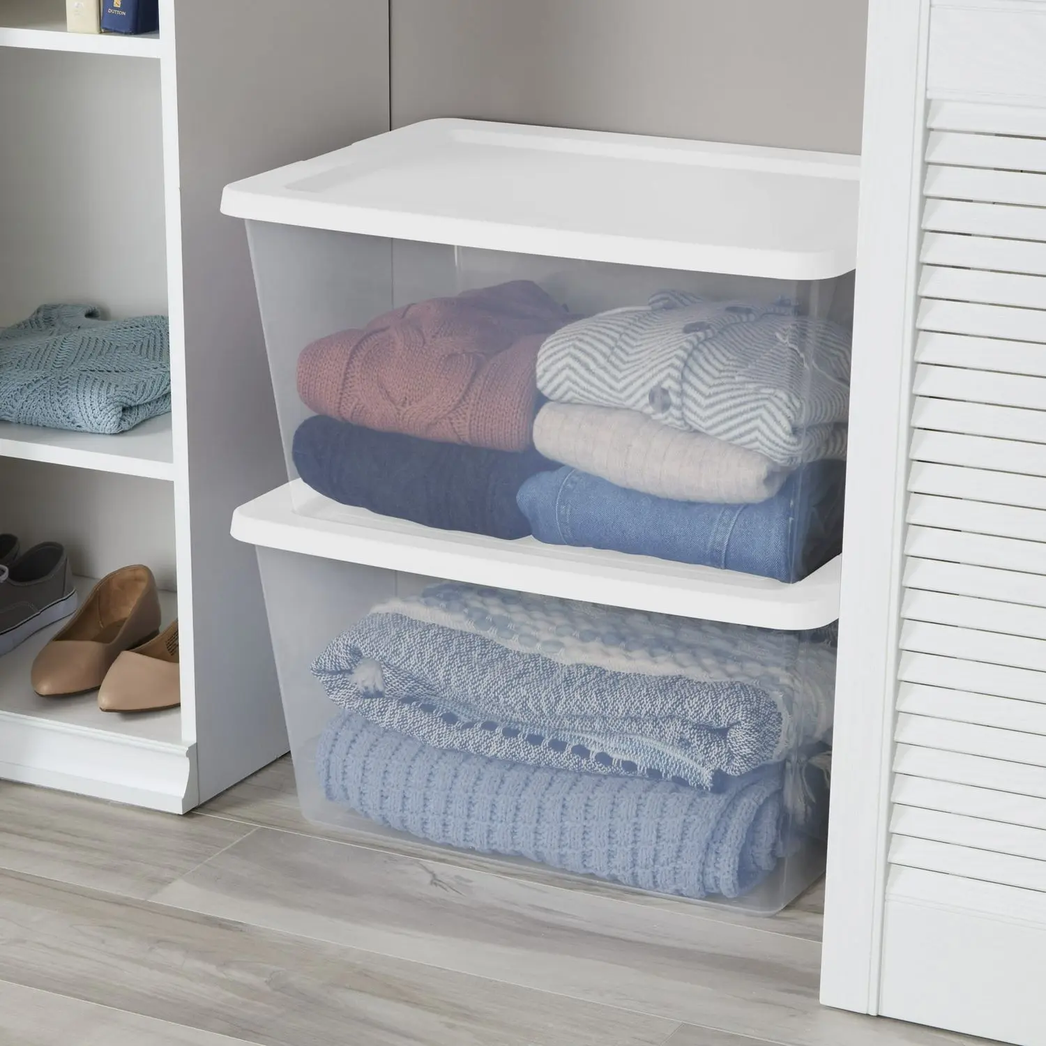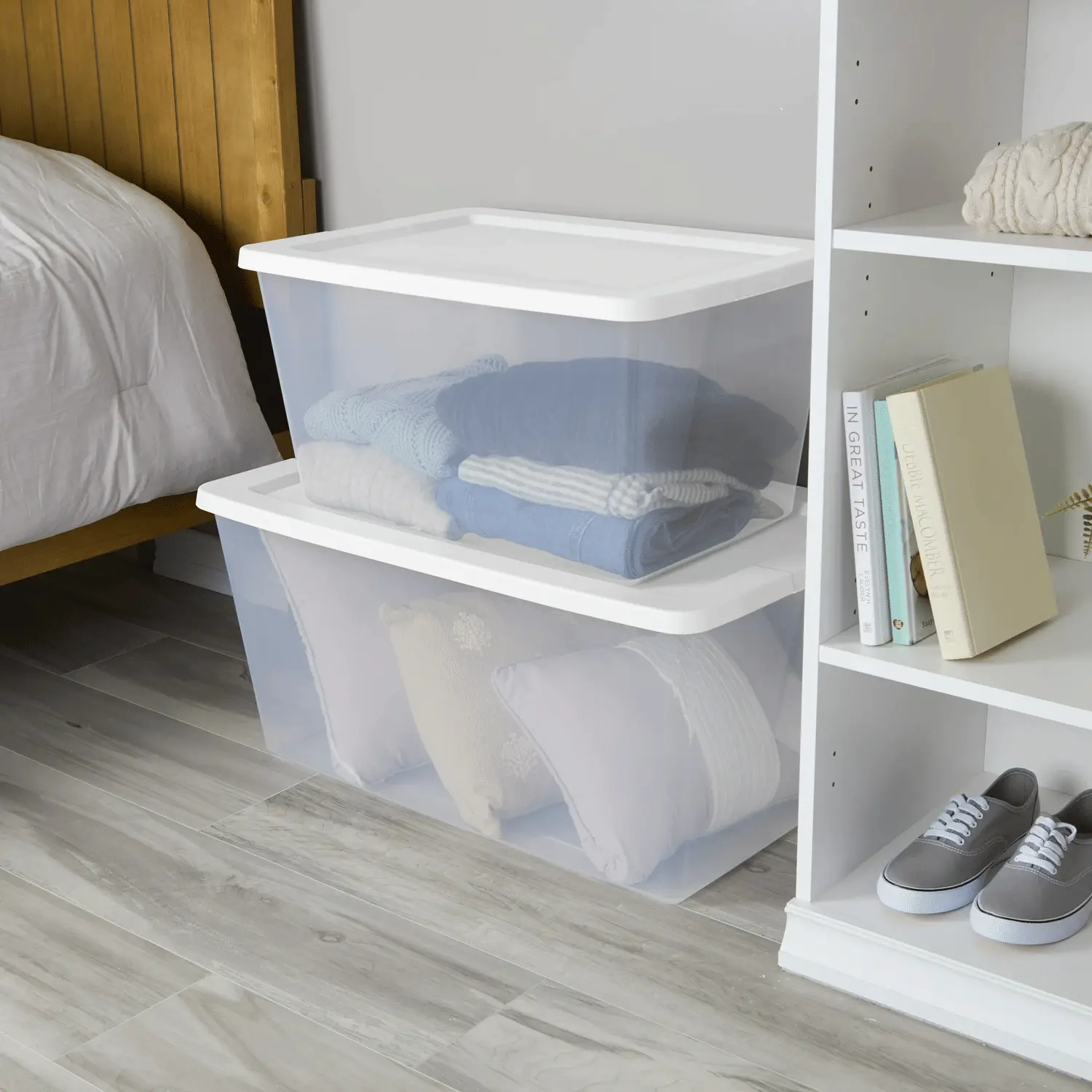 58 Quart Storage Box, Clear Plastic Storage Bin with Snap-on Lid, White