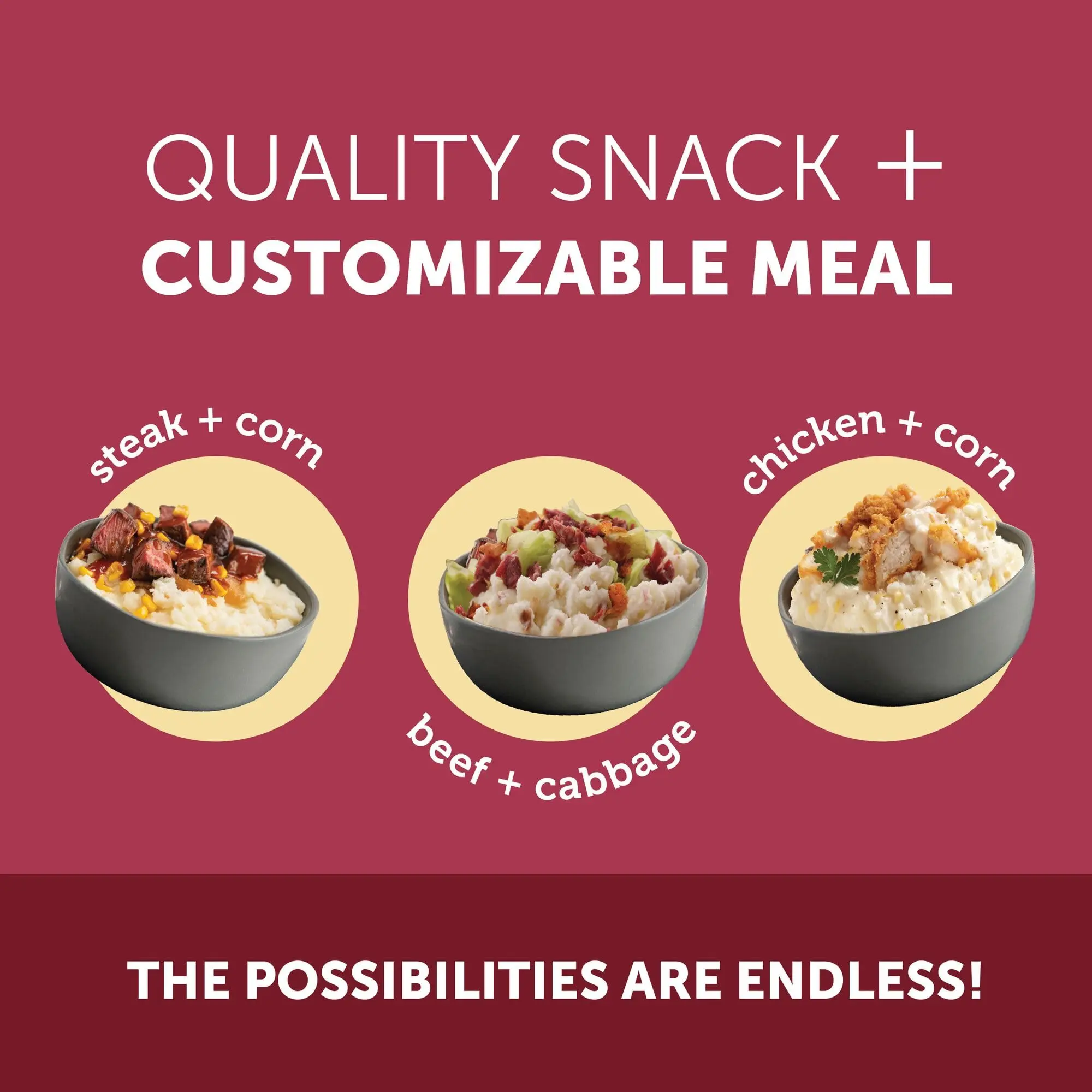 It can be prepared quickly by adding water, milk, and butter, making it a convenient side dish for everyday meals or quick cooking.