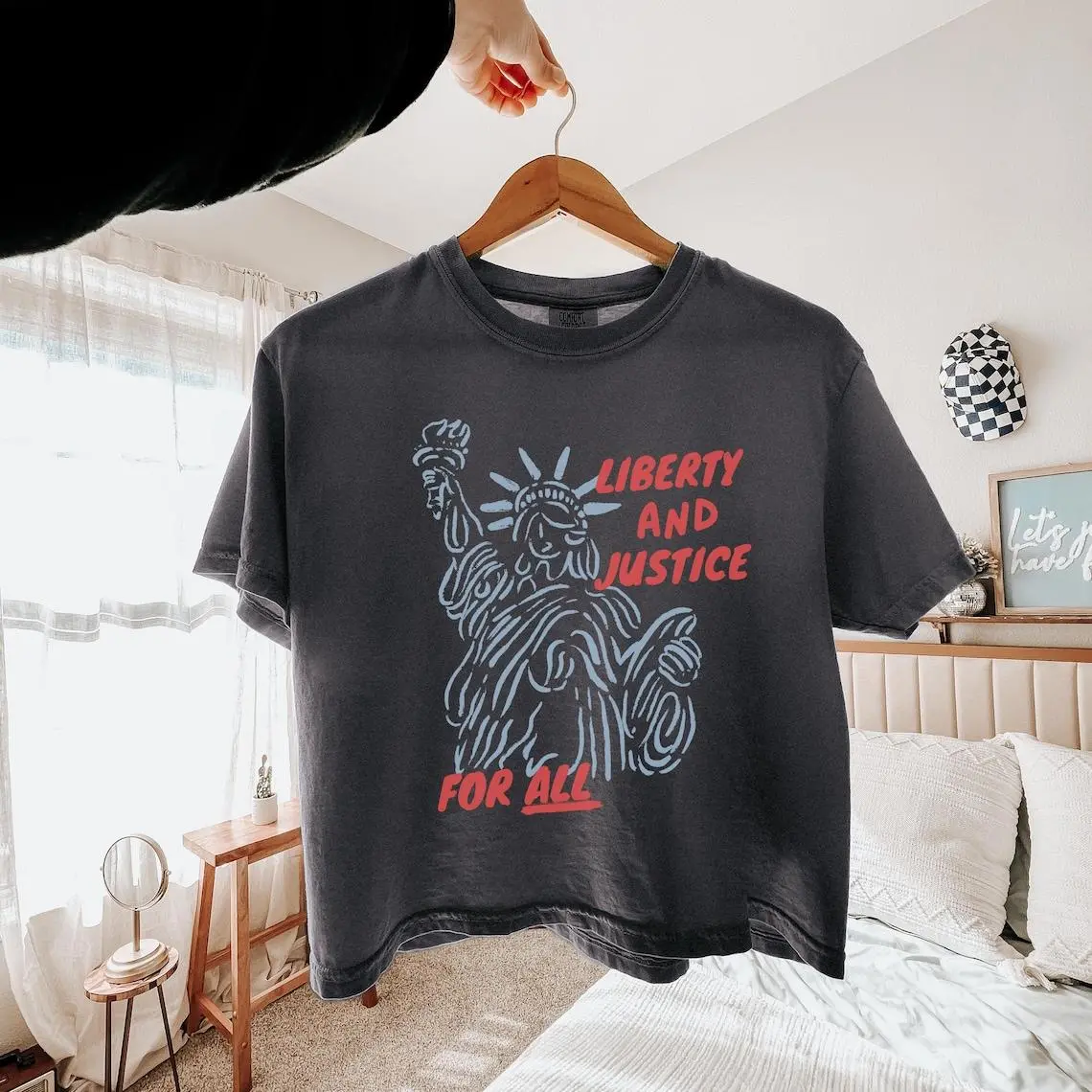 Liberty And Justice For All Crop Top, Resist Crop Top, Pro Democracy Boxy Shirt, 4th of July Crop Top, Liberal Crop Top, Leftist Crop Top