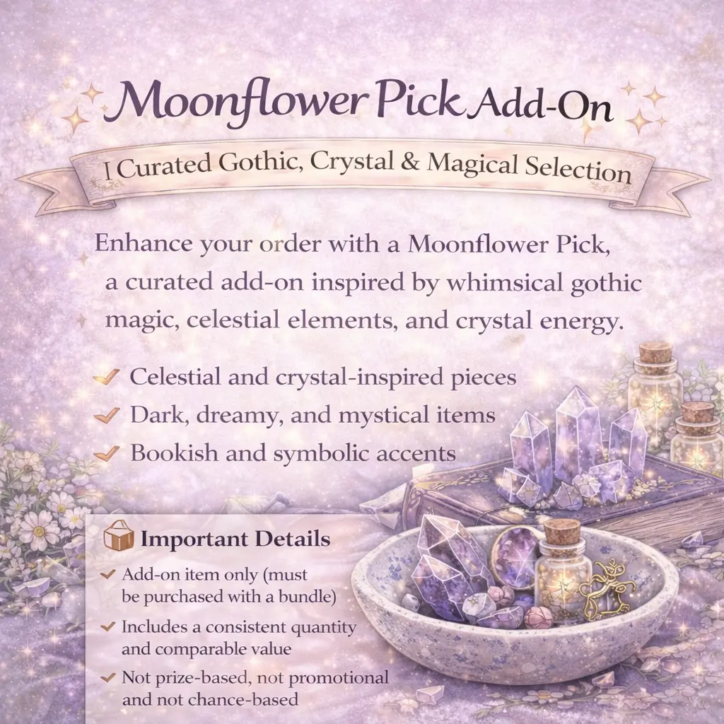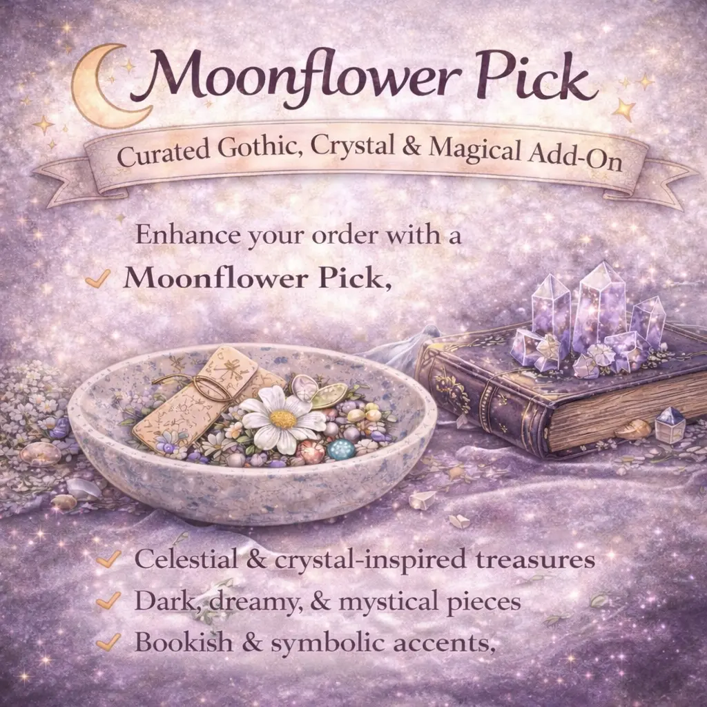 Enhance your order with a Moonflower Pick, a curated add-on inspired by whimsical gothic magic, celestial elements, and crystal energy.
