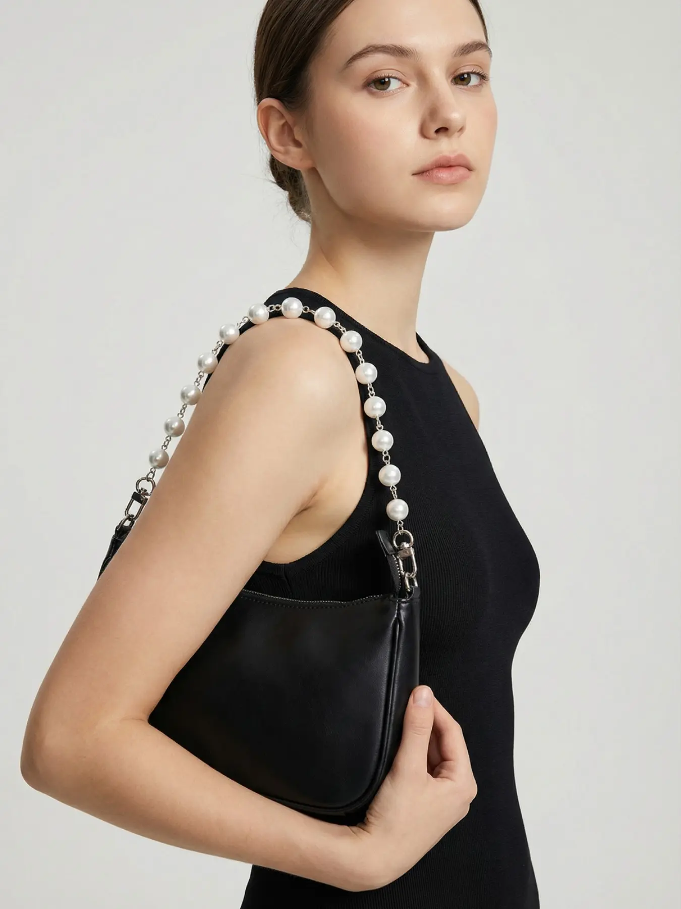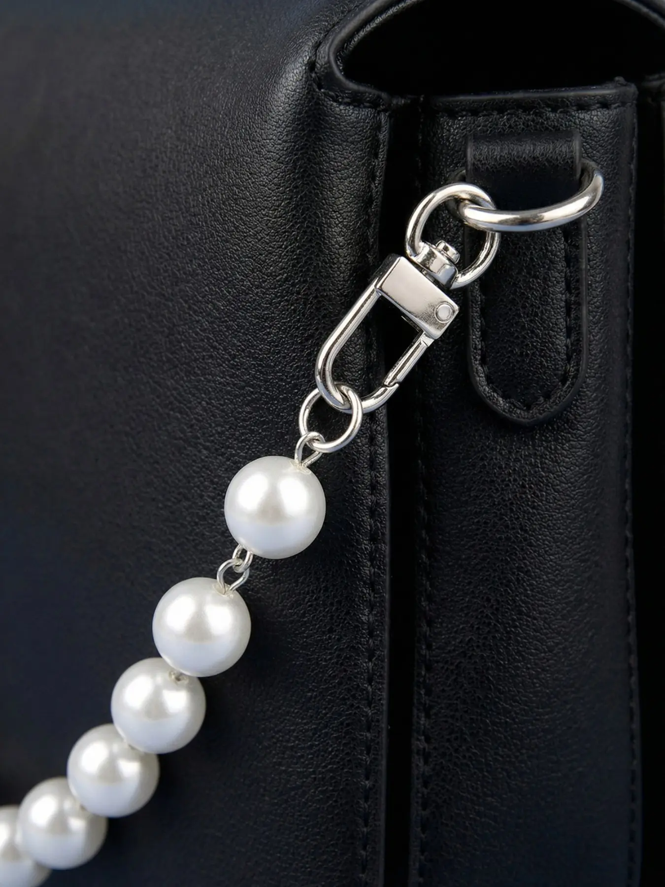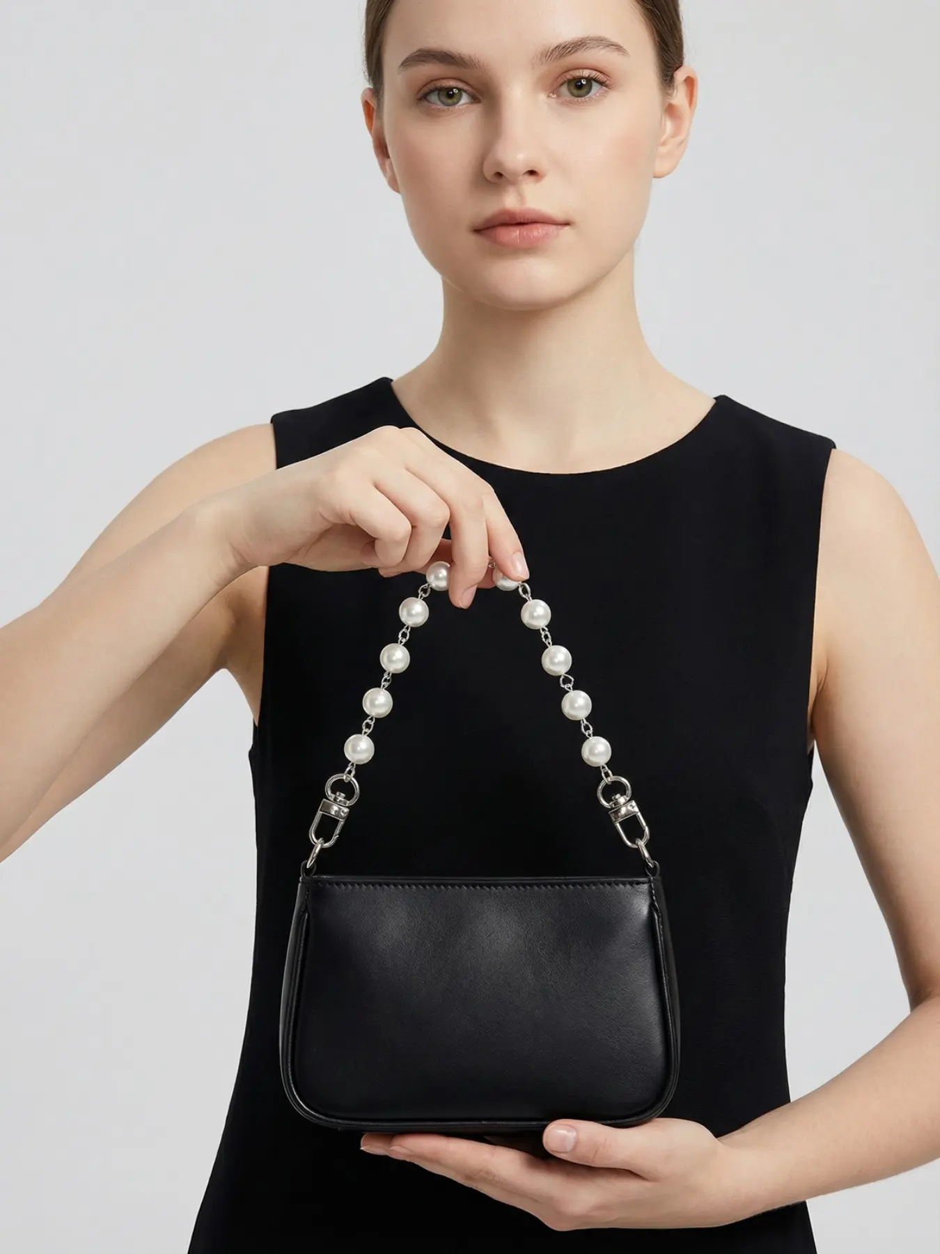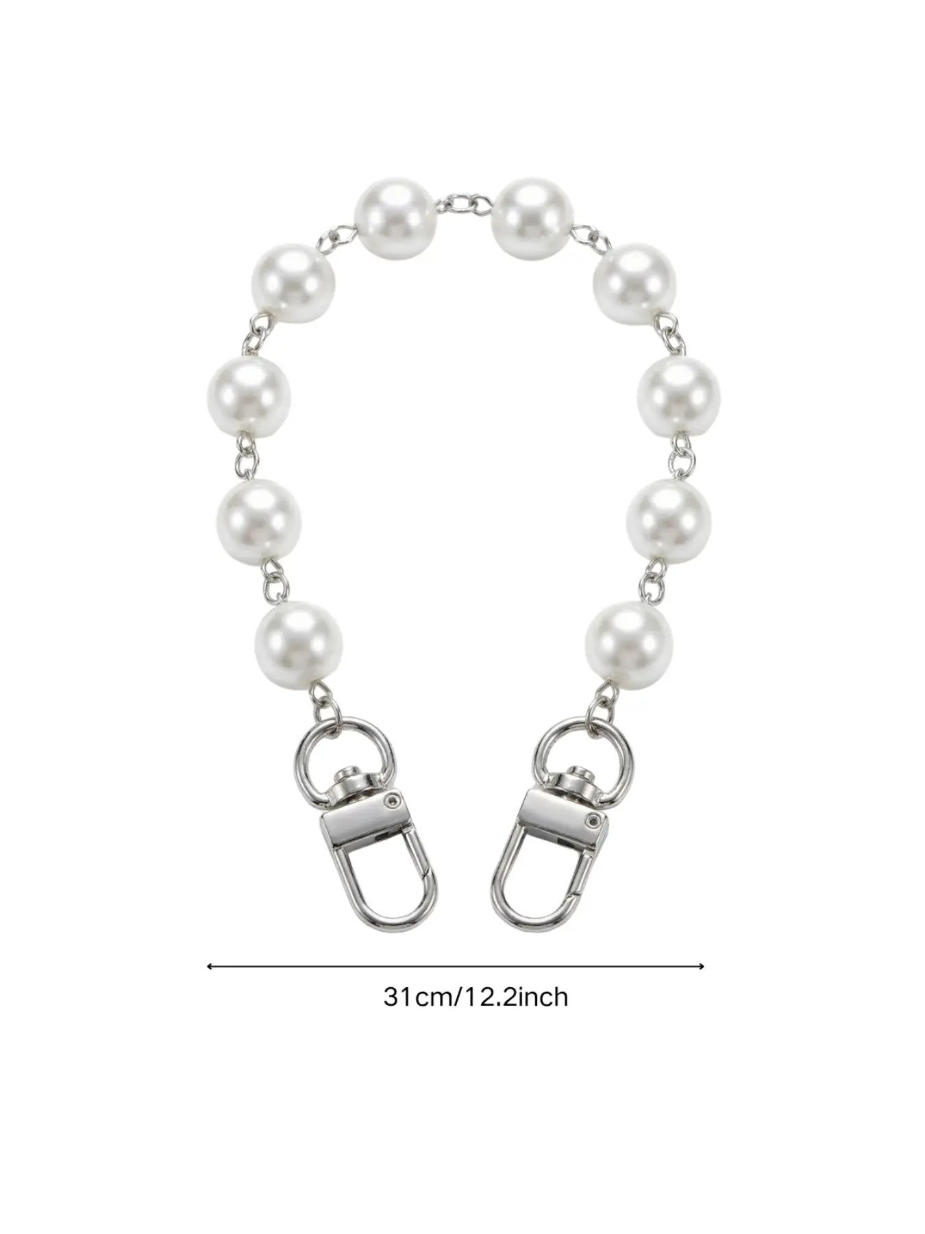 Faux Pearl Bag Chain Strap Silver Metal Decorative Purse Chain for Shoulder Bags Top Handle Mini Bags Handbag Accessory