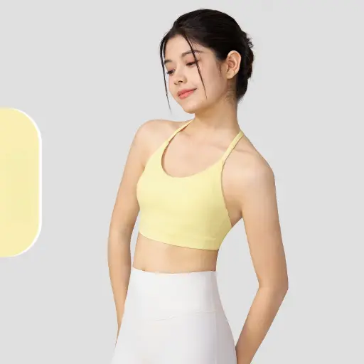 This yoga bra features a halter neck design with a triangle back, perfect for high-intensity workouts. Thin straps ensure a sleek, comfortable fit. The push-up and support design enhances your posture and confidence. Ideal for yoga and other sports, this vest is a must-have for your active lifestyle.