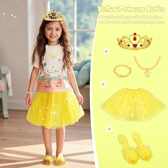 ·Adorable Princess Starter Kit for Creative Dress Up Play – A charming addition to your little girl’s princess wardrobe, featuring colorful skirts and accessories that let her mix and match to become any princess she imagines. Designed to encourage imaginative play, creativity, and confidence, while helping develop a sense of fashion and self-expression.