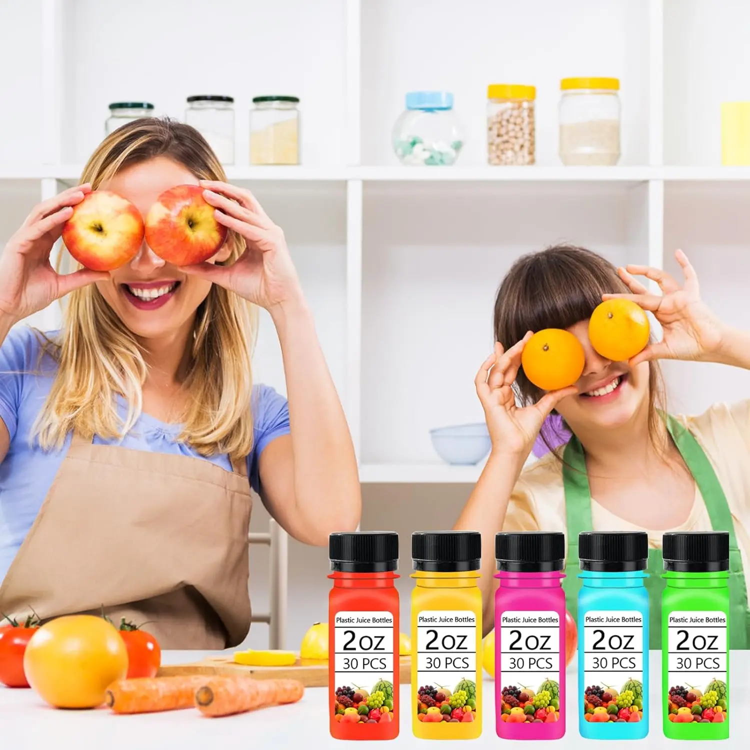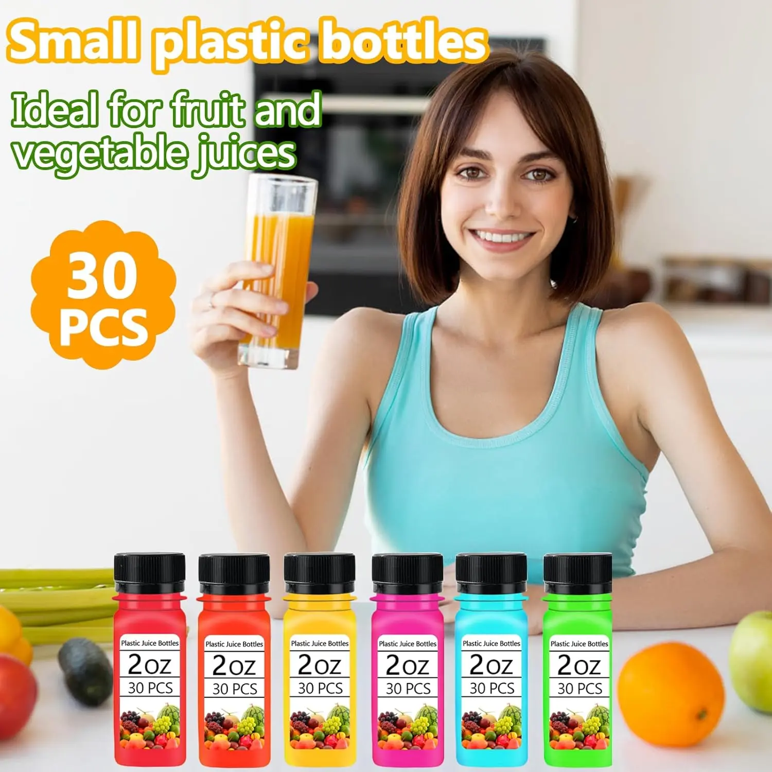 30PCS 2oz Small Plastic Shot Bottles with Caps,Reusable Clear Juice Containers