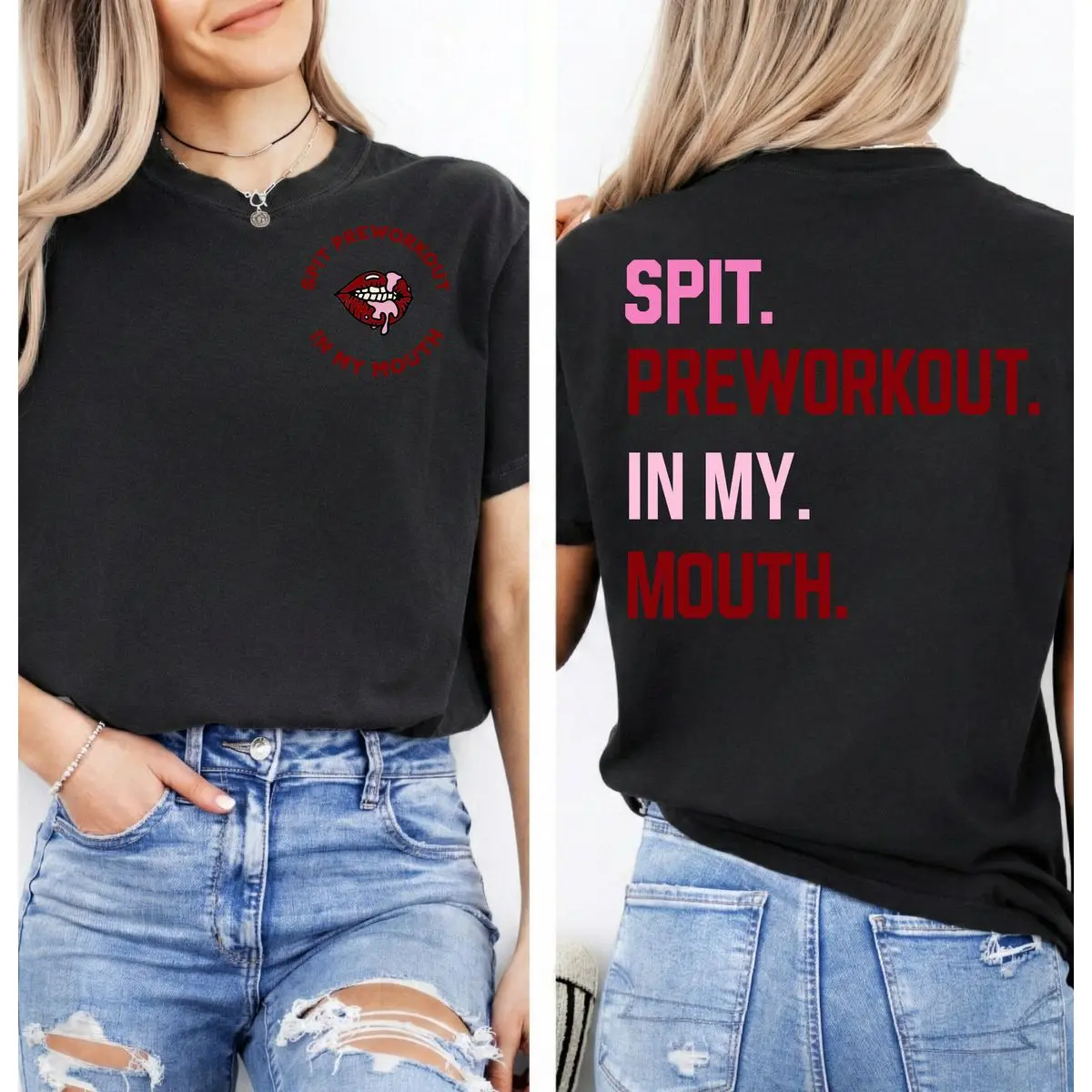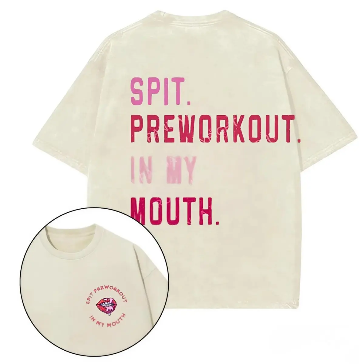 Mineral Wash Gym Quote T Shirt, Spit Preworkout In My Mouth Graphic Tee With Bold Fitness Humor Style, Casual Unisex Workout Shirt For Men Women, Vintage Everyday Training Top