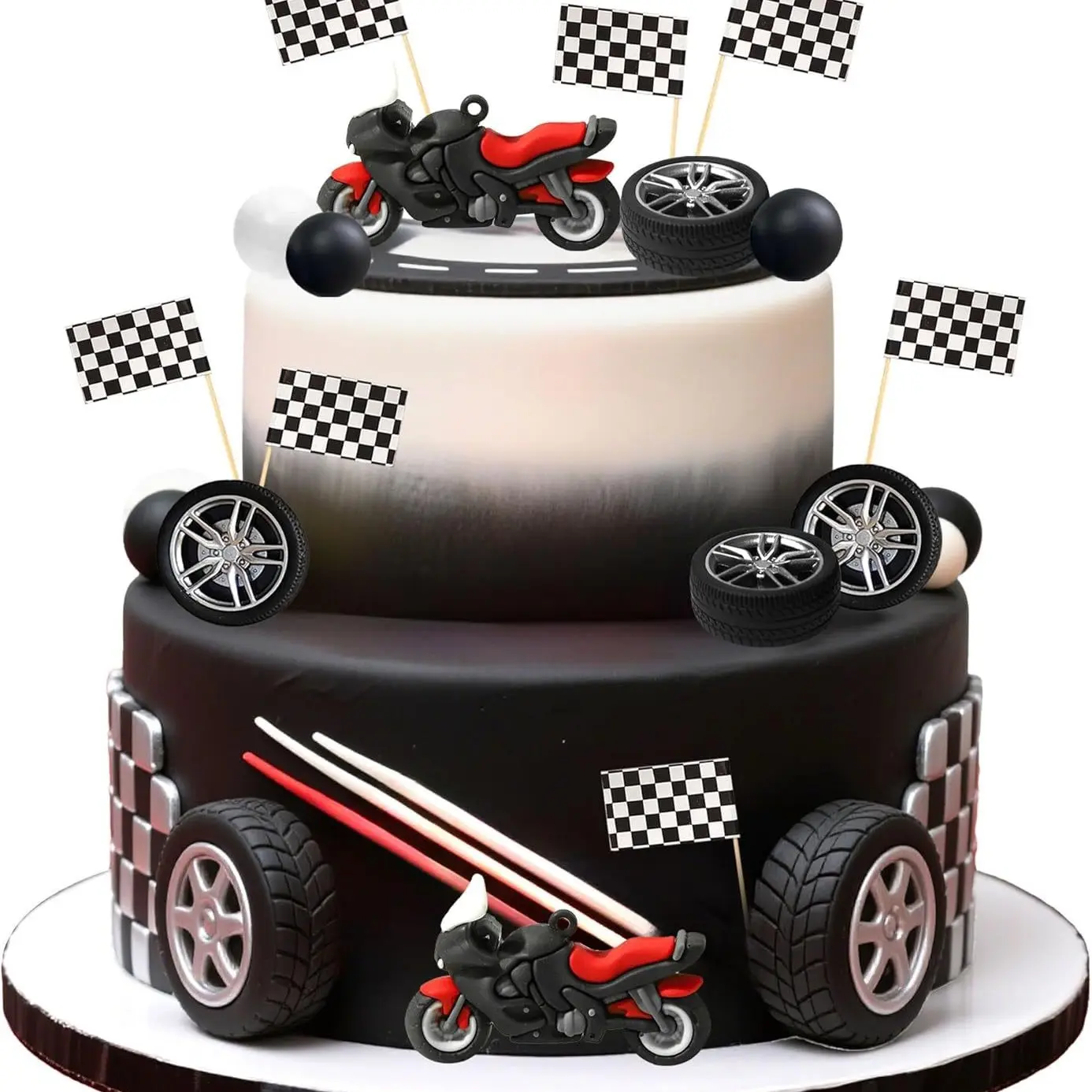 【Racing Theme】: Features black and white racing flags, perfect for adding a dynamic touch to any off-road themed cake.