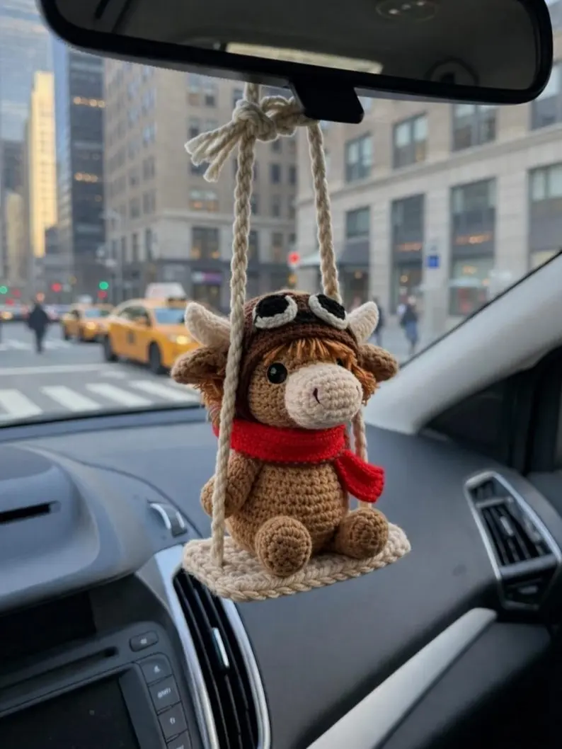 Add a cozy handmade touch to your car with this adorable Highland Cow Crochet Car Hanging. Carefully handcrafted with soft yarn and charming details, this amigurumi cow rearview mirror decor is the perfect way to bring warmth, personality, and a cute aesthetic to your everyday space.