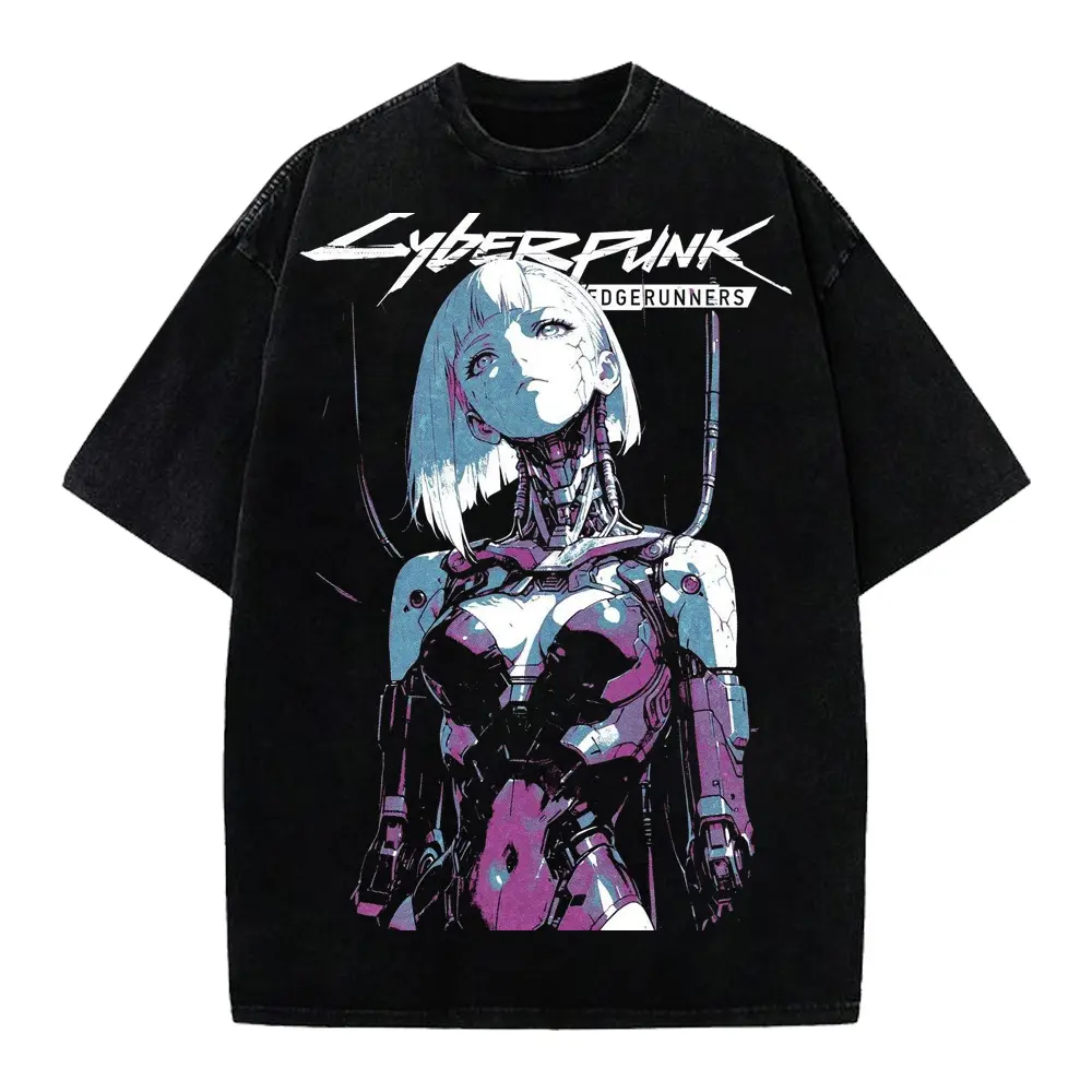 Cyberpunk Anime Girl Graphic T-Shirt, Futuristic Robot Aesthetic Tee, Neon Sci-Fi Streetwear Shirt, Techwear Outfit, Anime Style Top